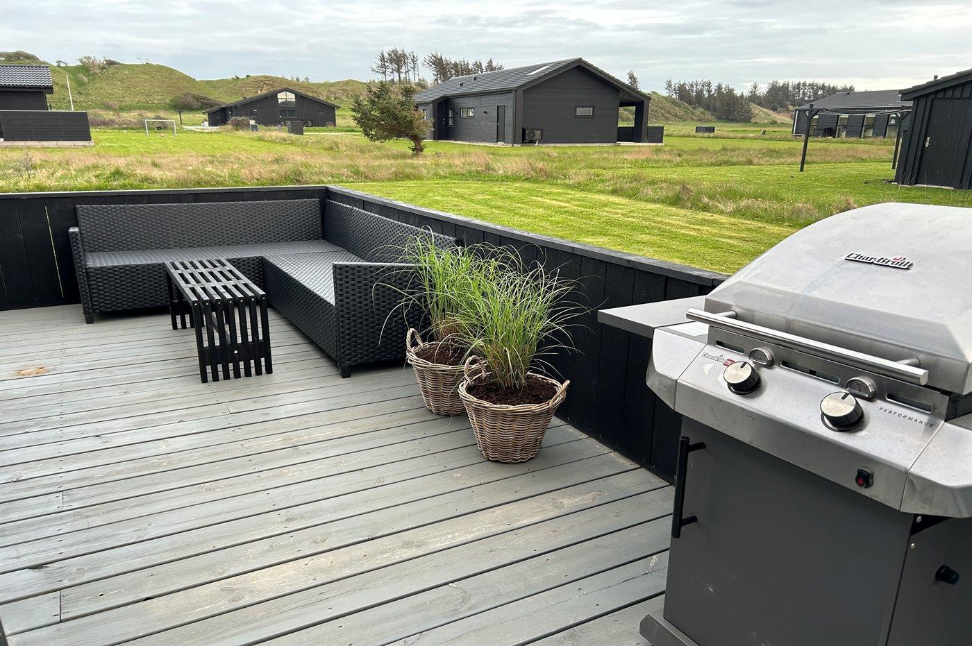 Ferieboligen er beliggende på en 1253 m² stor naturgrund. Der er 600 m til havet. Nærmeste forretning er beliggende i en afstand af 1500 m. Til ferieboligen hører 50 m² terrasseareal. Desuden er der 8 m² overdækket terrasse. Sandkasse. Der er installeret stik til opladning af elbil (mærke ABB). Type 2 stik. Med 11 kW/16A ladeeffekt. Parkering ved ferieboligen.