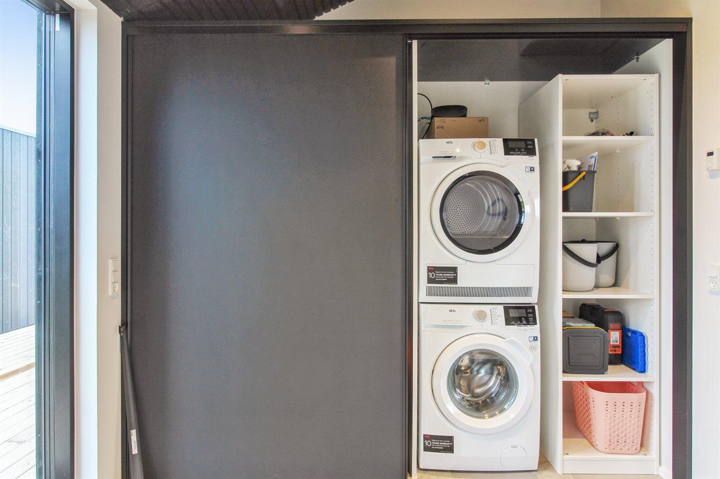 Køkkenet er udstyret med 1 køleskab. Der er 4 keramiske kogeplader, varmluftovn samt opvaskemaskine.