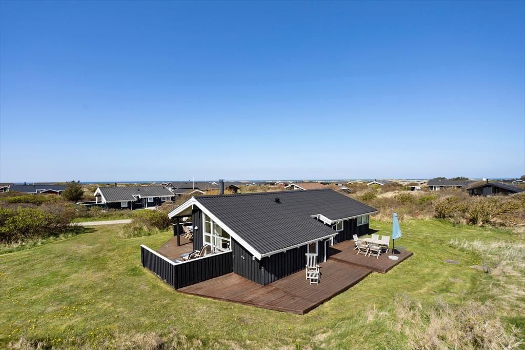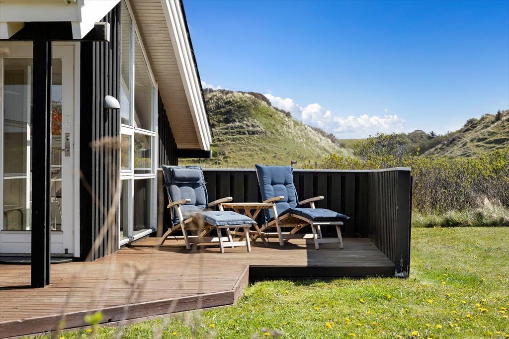 Driverlivet kan selvfølgelig også foregå ude i det fri på terrasserne, der breder sig om husets sider. Der er et delvist overdækket terrasseområde, og I kan også tage parasollen i brug, hvis ikke I vil sidde i fuld sol og nyde sommeren. Til børne og barnlige sjæle er der et gyngestativ på grunden. Vuet over det naturskønne landskab er med til at pynte på det hele, og med vestkystens friske havluft og udsigt til at grille om aftenen kan feriefornemmelsen ikke blive meget bedre.