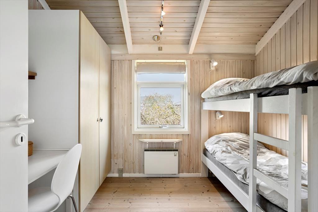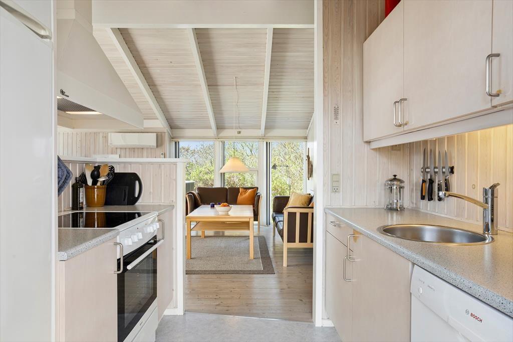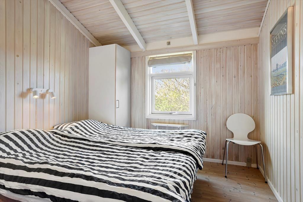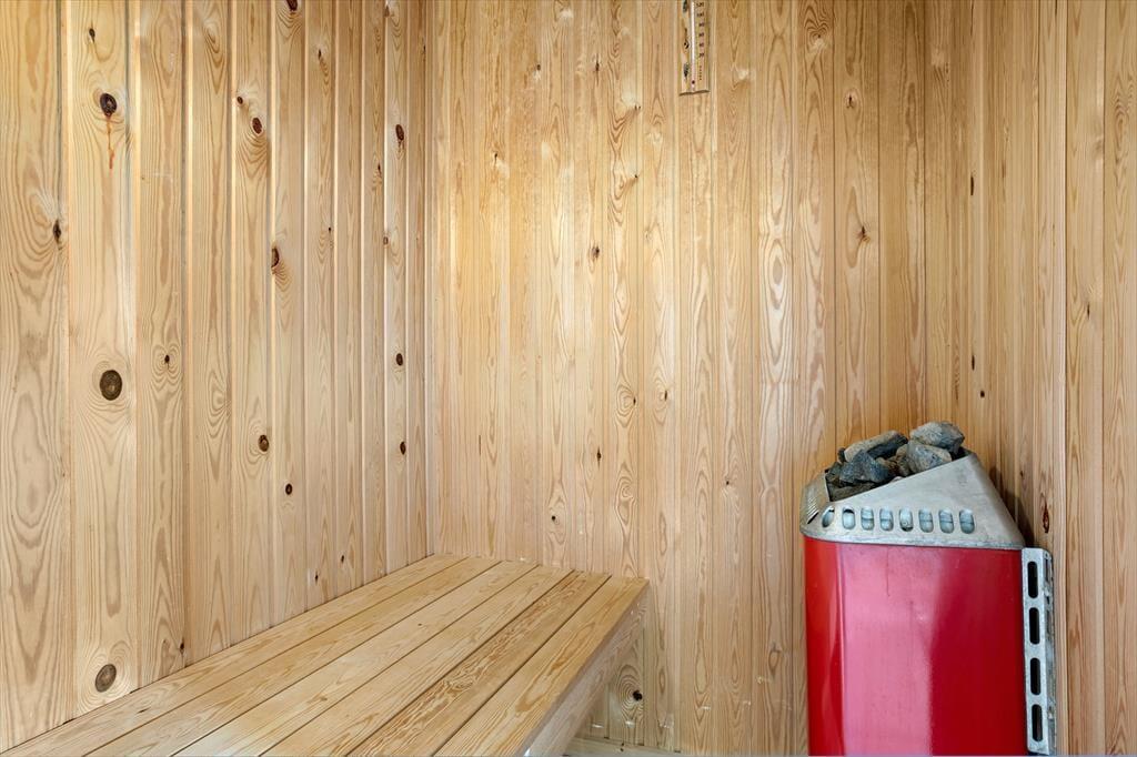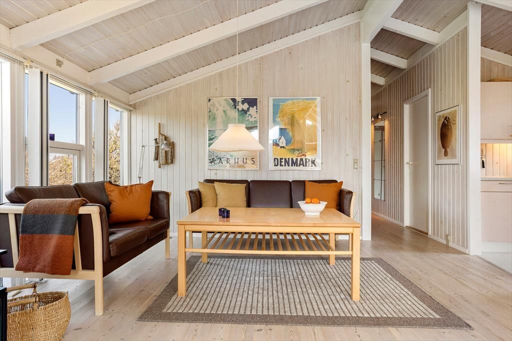 Med fire soveværelser, to badeværelser og et stort opholdsrum har det 95 m2 store sommerhus en gennemtænkt planløsning til otte personer. Der er imidlertid ikke kun taget højde for funktionaliteten, for atmosfæren er også i top i huset, der har loft til kip, pænt møblement, brændeovn og andre dejlige detaljer. De store vinduer er også værd at hæfte sig ved, for de lukker dagslyset ind og giver samtidig udsigt til Lien, som er en fredet indlandsskrænt, der strækker sig langs med sommerhusområdet. Ud over brændeovn er der for øvrigt varmepumpe i stuen, og er det køligt udenfor, er det intet mindre end fantastisk at bruge en time eller to på at gå i sauna og slappe af i spabadet.