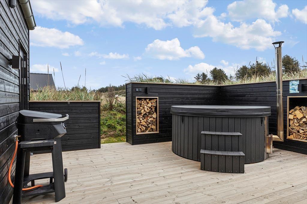 Det er ikke kun indenfor, at ferien føles lidt mere eksklusiv. Sommerhuset har nemlig flere store og velanlagte terrasser, som omkranser huset og gør det nemt at følge solen dagen igennem – eller finde skygge, hvis det er det, du trænger til. Terrasserne er møbleret med lækre havemøbler og liggestole, så du kan læne dig tilbage og nyde tilværelsen med en god bog eller et glas vin. Og som prikken over i’et står der et vildmarksbad klar til dig – et oplagt sted at stige ned i det varme vand, mens aftenhimlen farves rød over klitterne. Der er en særlig ro på Klittjørnen, og du vil hurtigt opdage, hvor befriende det føles at være så tæt på naturen uden at gå på kompromis med komfort og luksus. Her er der plads til både leg, latter og lange middage under åben himmel – med Nørlev Strands karakteristiske fred og naturskønhed som bagtæppe.