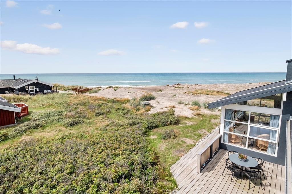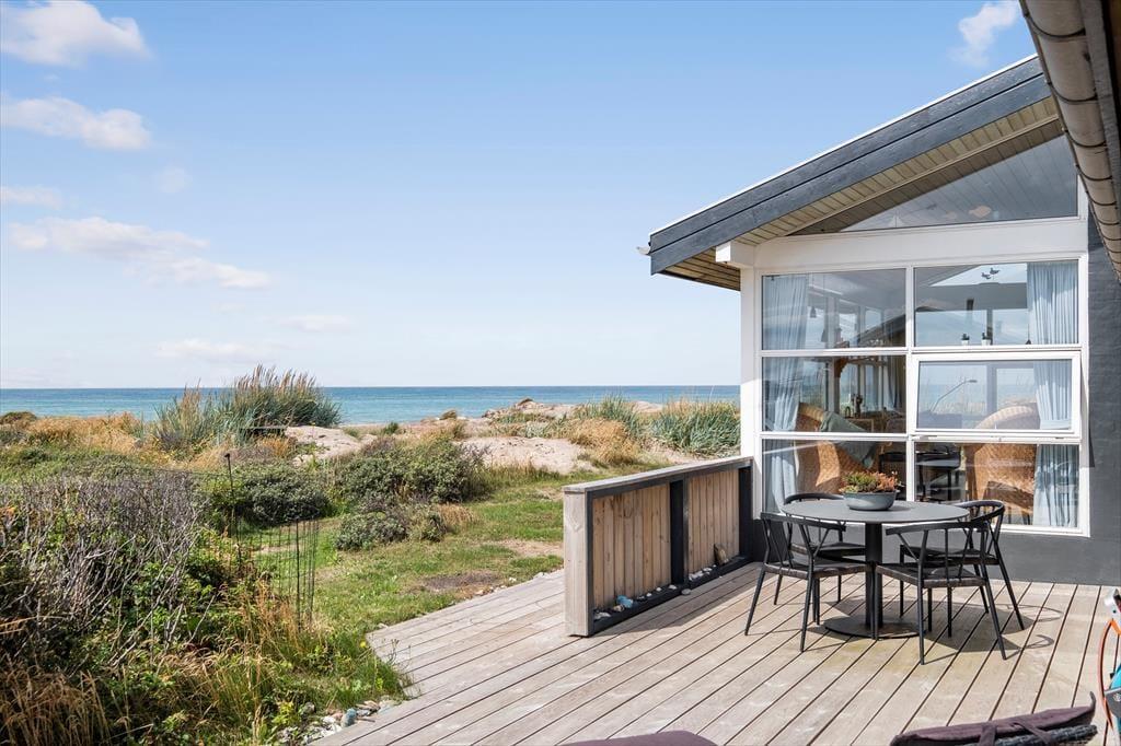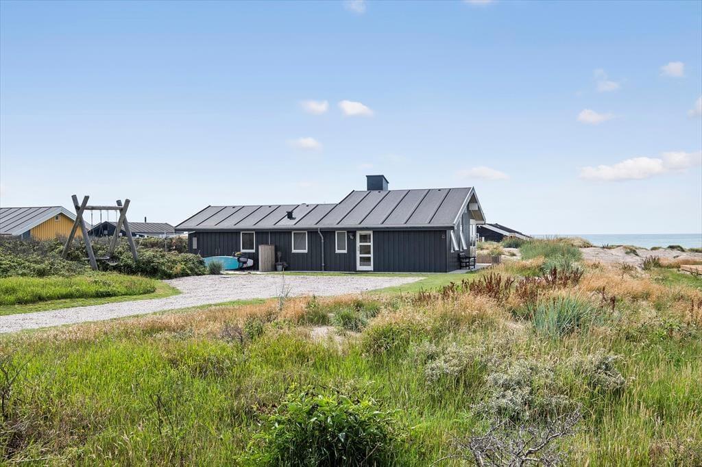Grunden er en klitgrund omkranset af hybenroser og havtorn, som delvist skærmer mod både vind og indkig. Det store og rummelige areal foran huset er velegnet til både boldspil og leg. Eller måske til en god gyngetur i en af de bekvemme gynger, der findes foran huset. Der er gode terrasser med lækroge, så udendørslivet kan nydes, selvom vestenvinden engang imellem får lyst til at drille lidt.