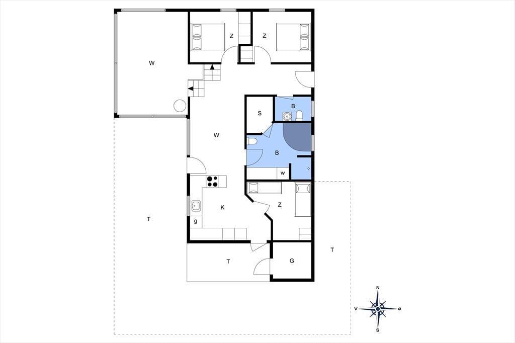 Huset er indrettet med både plads og hygge på samme tid. Køkken og spiseafdelingen er ud i et, og vinkelret på spisestuen er der to trin op til stuen med sofakrog og den mest fantastiske udsigt. Mellem de to afdelinger er der en skøn brændeovn, som kan bidrage til både varme og aftenhygge. Huset har 3 soveværelser samt to gode sovepladser på hemsen, hvorfra man kan se ud over køkkenet og området. Hvis man er heldig kan man fra hemsen få et førstehåndsindtryk af, hvad menuen står på til morgenmad.