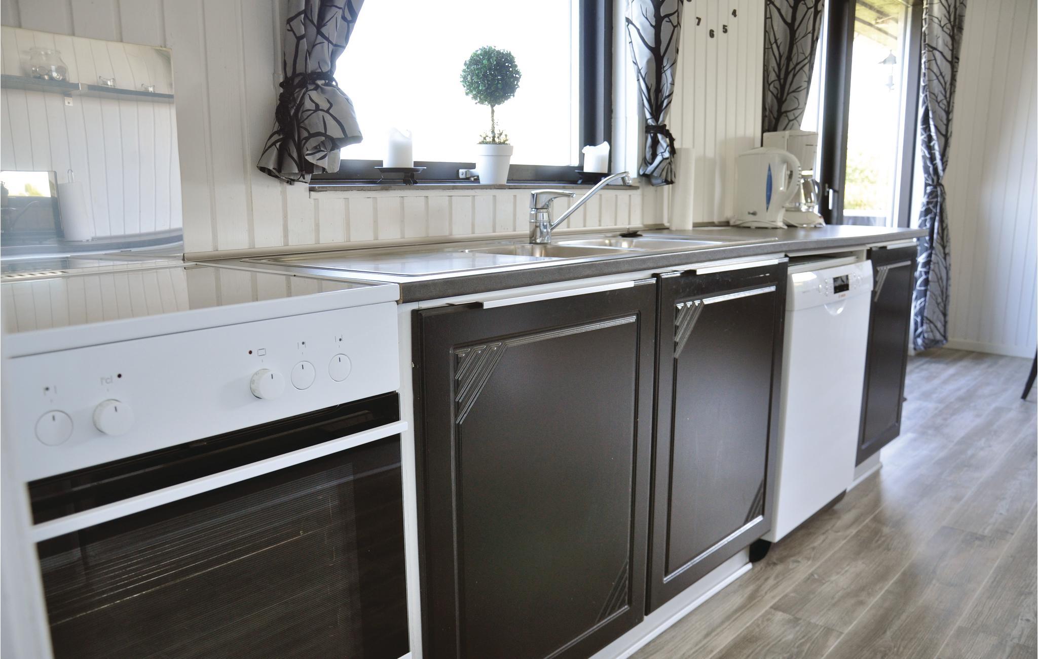 Velkommen til dette hyggelige feriehus, der har en fremragende beliggenhed tæt på vandet. Her kan I glæde jer til en fuktionel indretning, hvor I ikke kommer til at mangle noget! Her finder I mange træelementer, der giver boligen et hjemligt strejf, og det dejlige køkken ligger i åben forbindelse til stuen og rummer alle moderne faciliteter. I stuen venter jer et behageligt siddeområde, hvor I kan læse en god bog eller spille brætspil i mange timer.