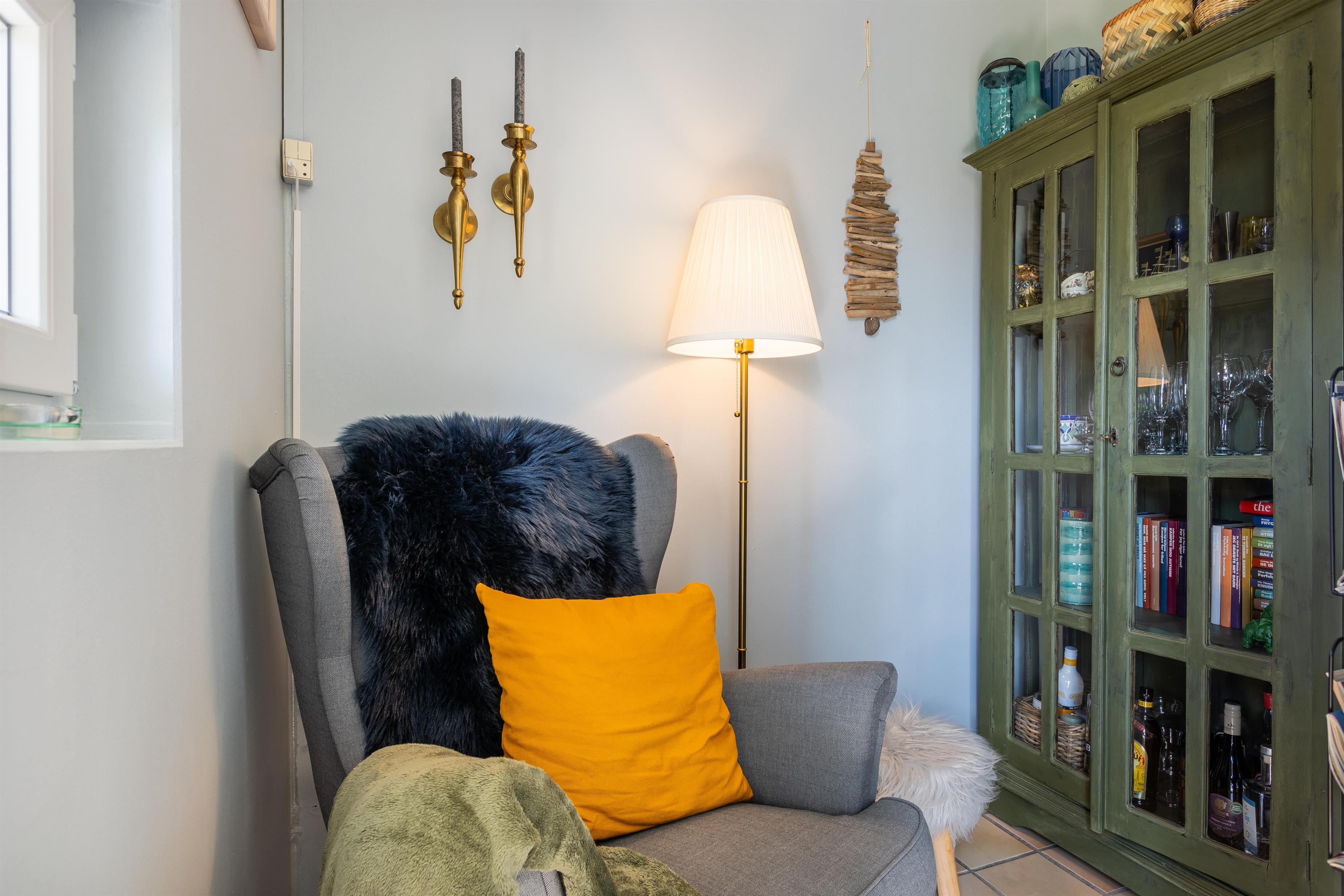 Udenfor finder I en lille privat terrasse, der er perfekt til hyggelige udendørs stunder. Her kan I nyde solskinnet og den friske luft, mens I slapper af i de naturskønne omgivelser. Terrassen er delvist overdækket, så det er også muligt at trække ind i skyggen. Lejligheden ligger kun en kort gåtur fra stranden, hvilket gør det let at tage en dukkert eller gå en tur langs vandet. Efter en dejlig feriedag er terrassen det perfekte sted at nyde aftenskaffen til den smukke solnedgang.