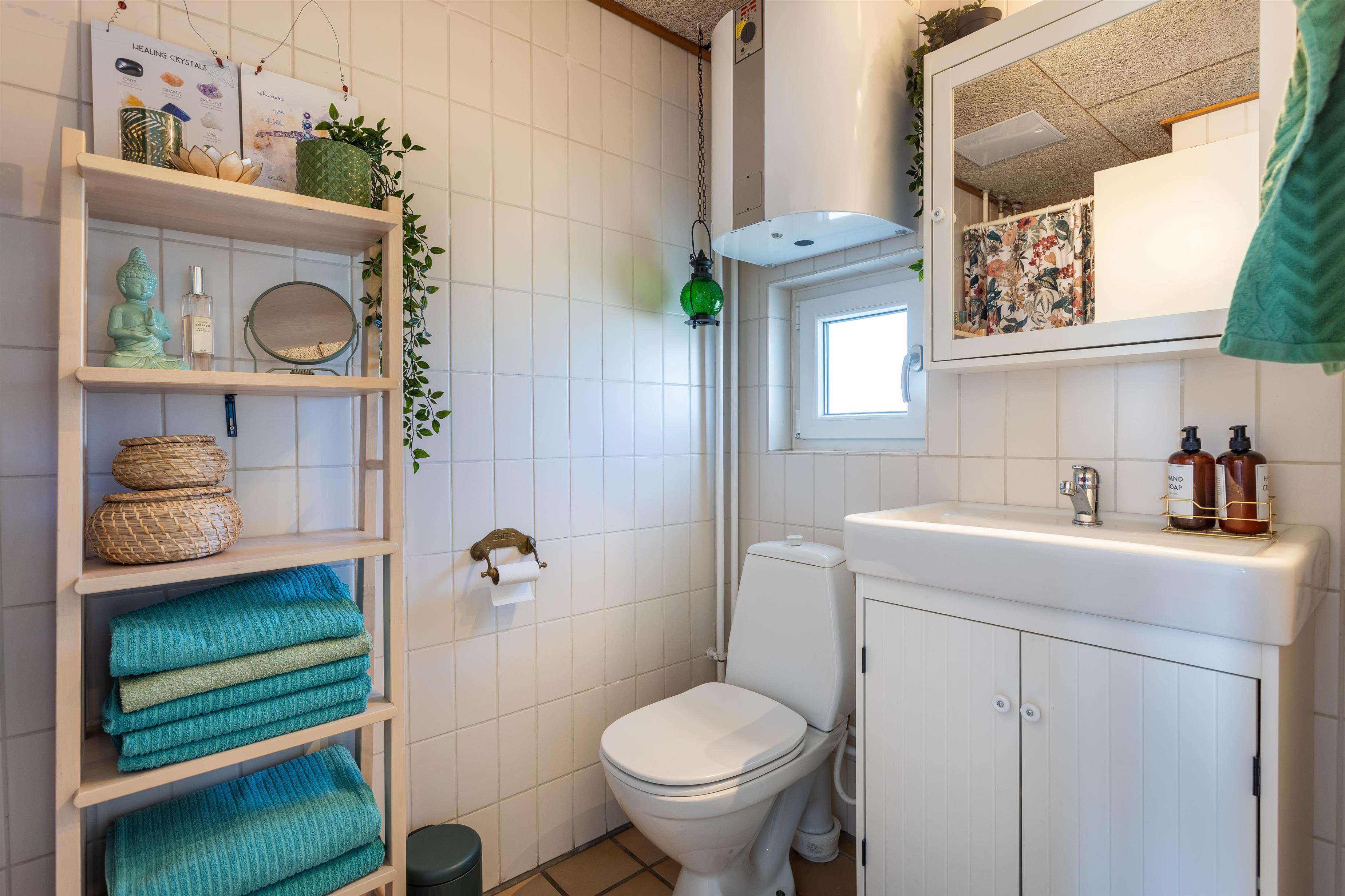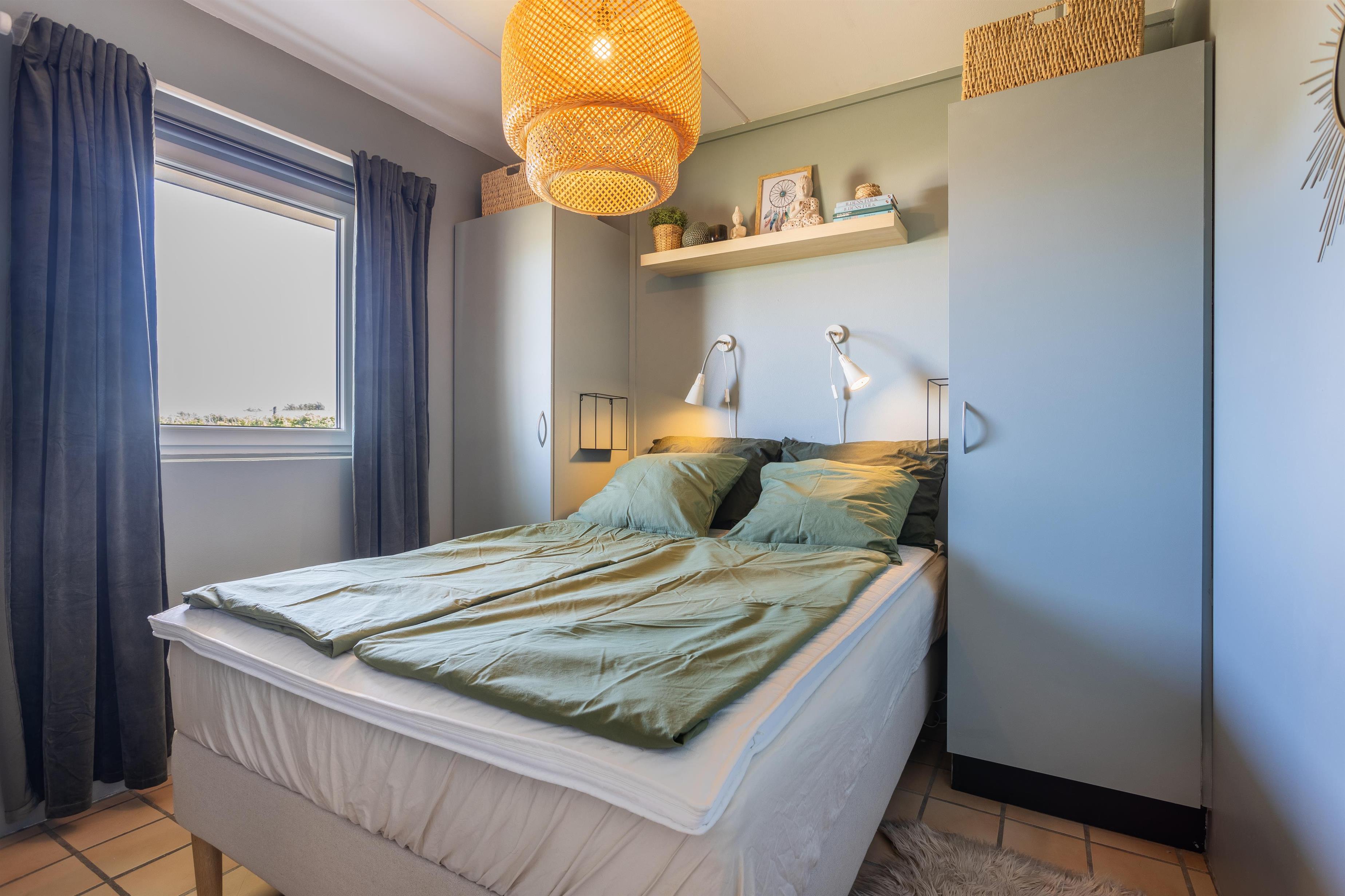 Lejligheden er lyst og enkelt indrettet med fokus på funktionalitet og komfort. I stuen og køkkenet, der ligger i åben forbindelse, er der skabt en sammenhængende atmosfære, hvor I kan samles og nyde feriedagene. Herfra er der direkte udgang til en dejlig terrasse, hvor I kan starte dagen med en kop kaffe og lade den friske havluft sætte feriestemningen. Kun et stenkast fra lejligheden finder I den hvide sandstrand, og fra den hyggelige stue kan I nyde udsigten til Vesterhavet – åbner I terrassedøren, kan I tydeligt høre havets brusende bølger lige udenfor.