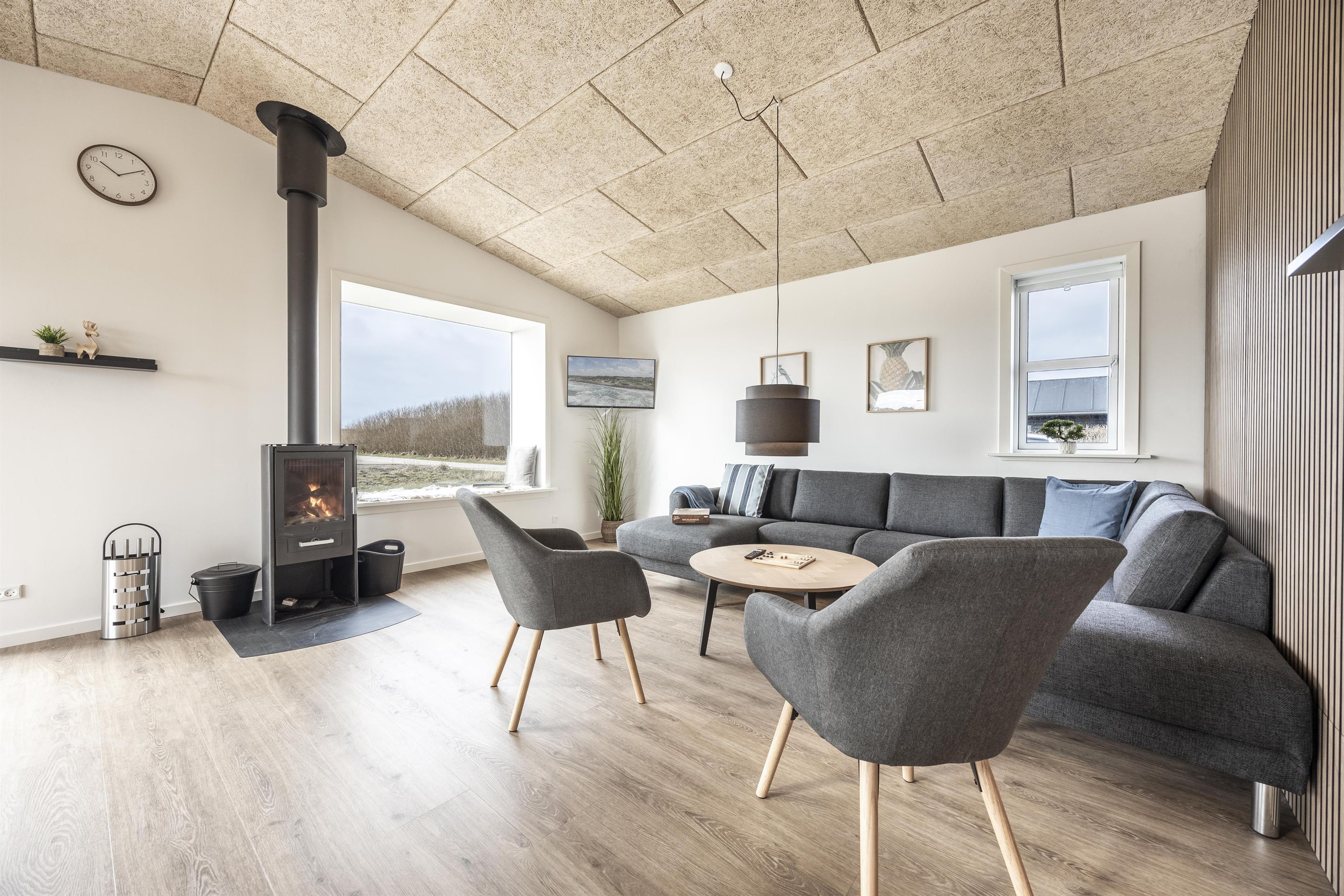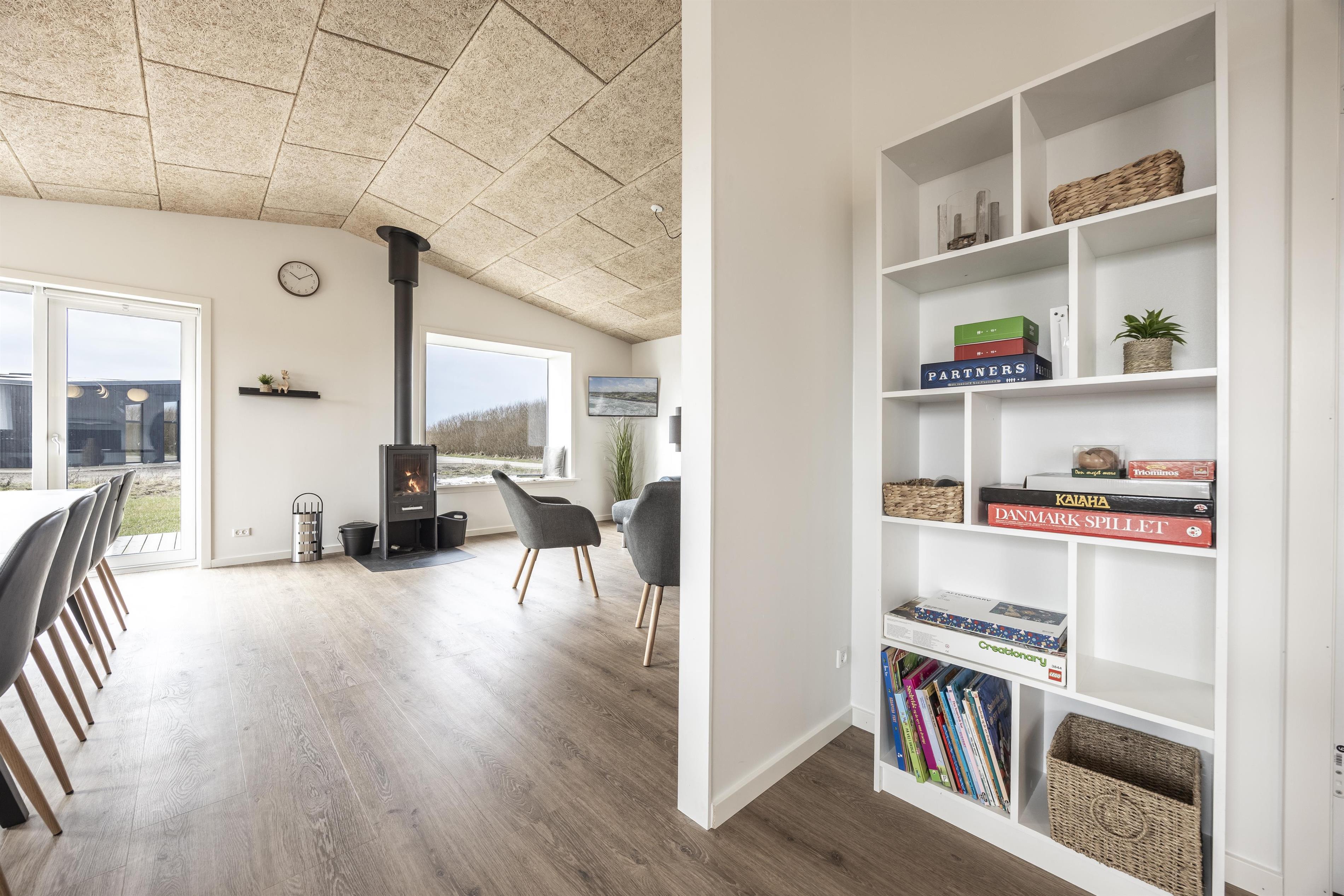 Det energivenlige feriehus er opført i bæredygtige materialer og med omtanke for miljøet ved brug af bæredygtige løsninger, som også sikrer et sundt indeklima. For eksempel er der opsat en luft-til-luft varmepumpe samt en brændeovn, som også skaber en hyggelig atmosfære.