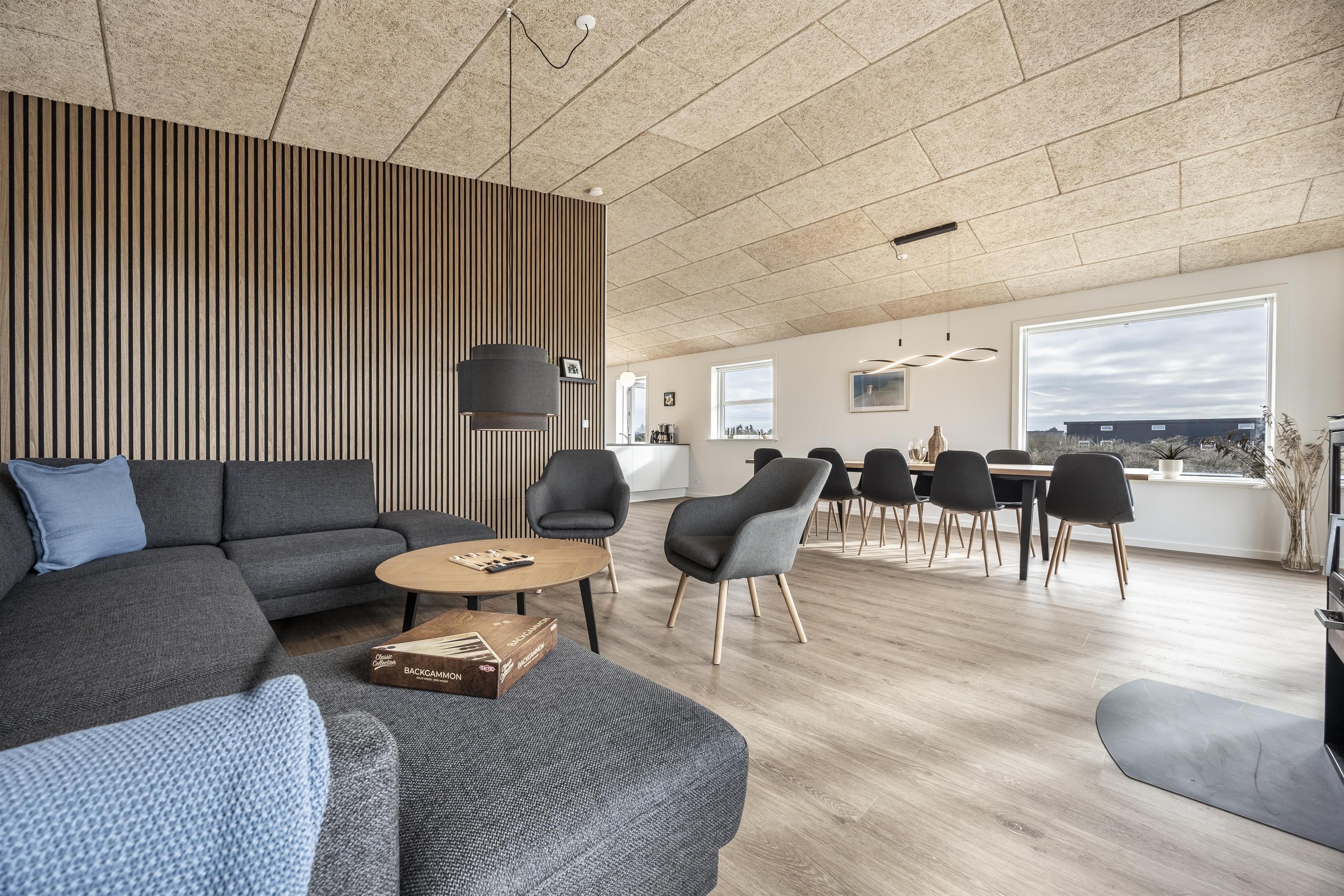I den hyggelige kystby Nr. Lyngby, finder I dette helt nye, lyse og indbydende feriehus, som er opført i materialer med tanke på miljøet. Med kun omkring 800 meter til det brusende Vesterhav, vil I nå én af danmarks bedste badestrande på kort tid. Omkring huset finder I en stor grund, som indbyder til masser af sjov og leg for store og små - med dette feriehus har I basen for en afslappende og vellykket ferie tæt på hav og skøn natur.