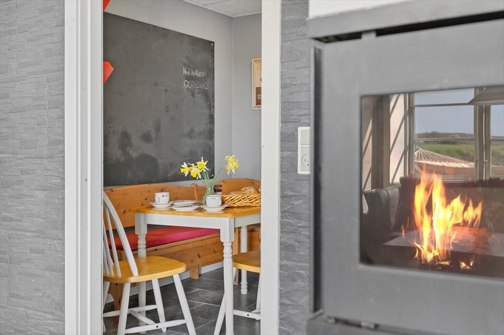 Huset er indrettet funktionelt og hyggeligt med to gode stuer og samlingsrum. I den ene stue er et godt spisebord, hvor I let kan dække op til alle feriens måltider. Her er også en sofa foran brændeovnen, så det er let at tænde op for hyggen og varmen. Fra stuen er der direkte udgang til den store og sydvendte terrasse. Når vejret er godt, bliver denne terrasse næsten som et ekstra opholdsrum, hvor det er perfekt at sætte sig udenfor med feriens måltider.