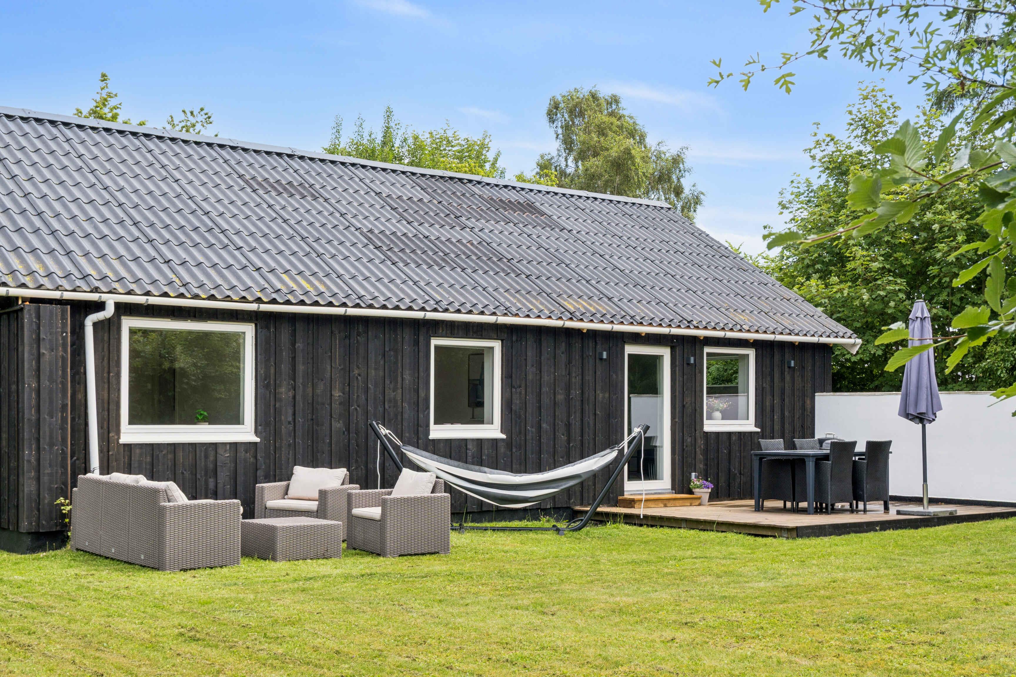 Dejligt sommerhus, der er nyistandsat i 2025 med nyt bl.a. køkken og bad, nye møbler og 240V lader til elbil. Kort afstand til stranden og med en stor, lækker have er der indbudt til ren afslapning i det her sommerhus. I huset er der køkken med bl.a. espressomaskine og i forlængelse af køkkenet finder I stor spiseplads og hyggelig stue, der er samlingspunktet i sommerhuset. Derudover er der 3 store, dejlige værelser med dobbeltsenge og god skabsplads samt helt nyt, mindre badeværelse. I sommerhuset er der bordfodbold og spil og i haven findes både bålplads, hængekøje og skøn sydvendt terrasse til de lyse sommeraftner. Pr. 1.2.2026 er der også en 4-pers. sauna i haven til de kolde vinterdage.