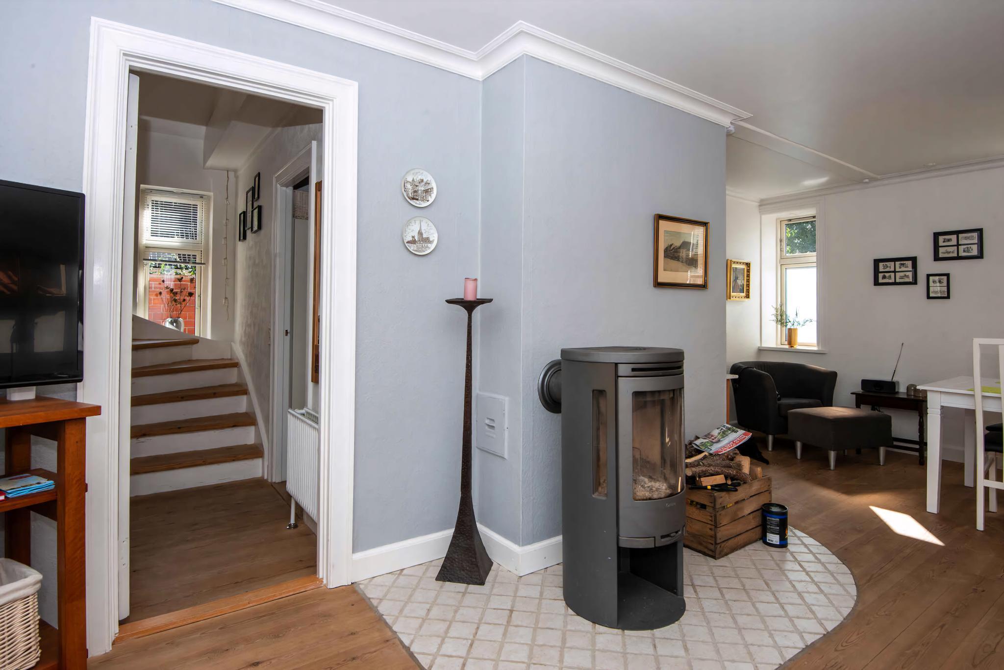 Hyggeligt byhus i Nakskov med gårdhave, brændeovn og central beliggenhed tæt på havn og butikker.