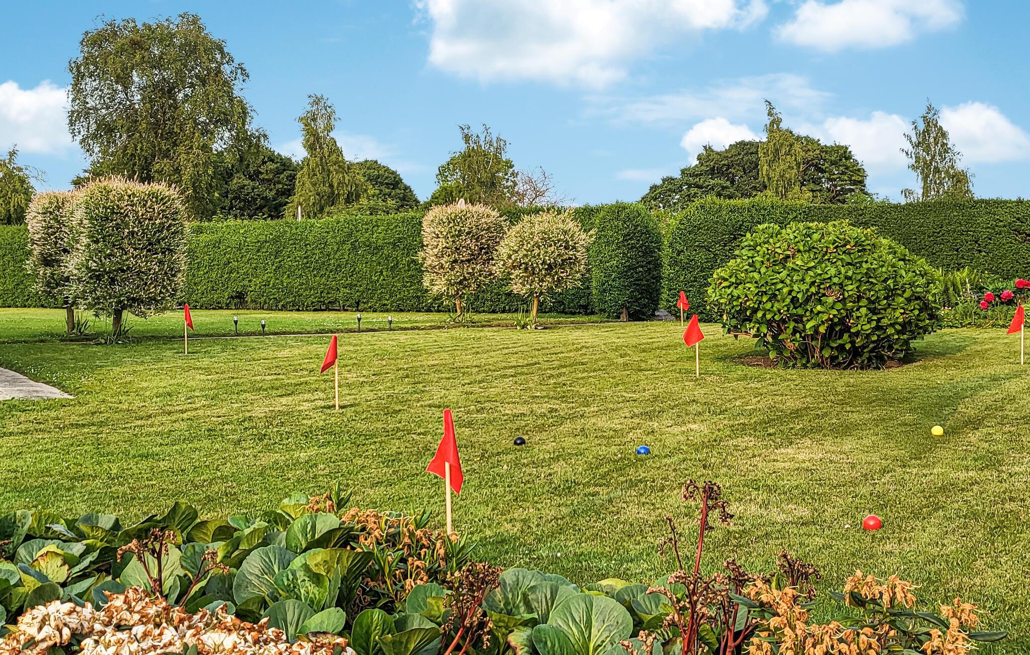 På de varme dage kan I trække ud på den store terrasse. Til de aktivitetsglade er der masser af plads at boltre sig på på den store grund, hvor der en 12-hullers krolf-bane og keglefodbold. Her kan I også grille om aftenen på terrassen.