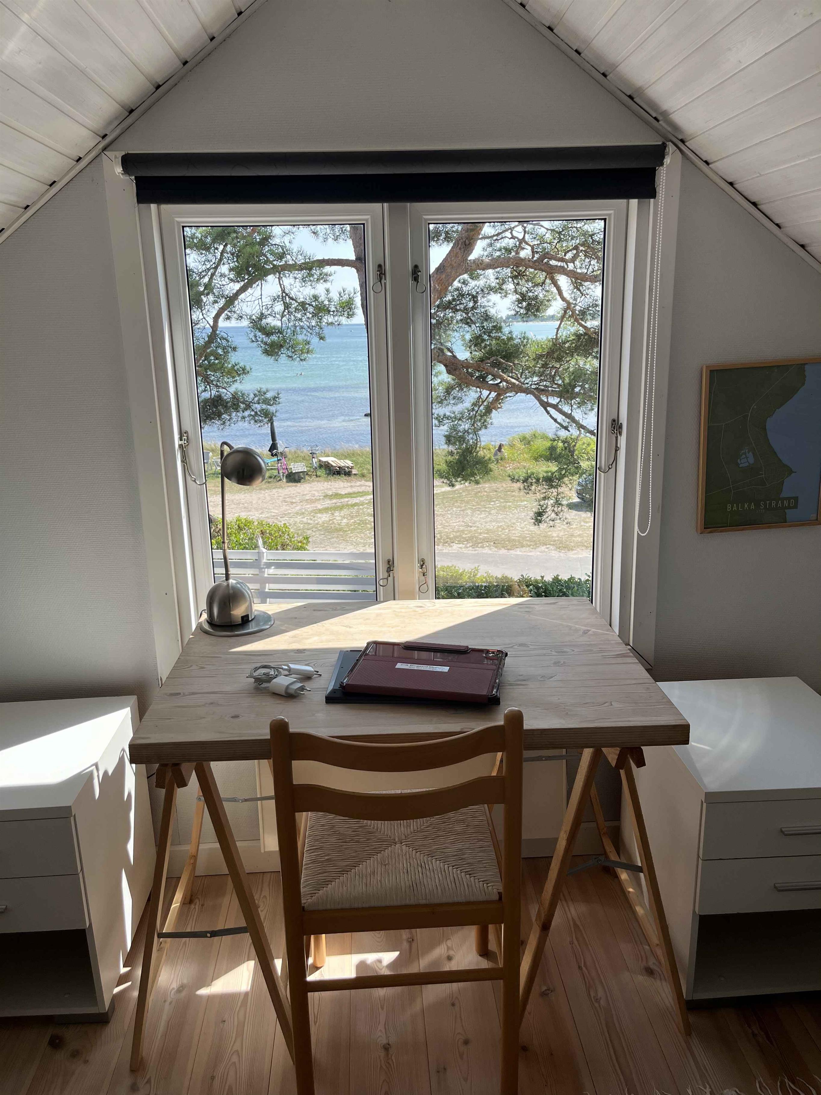 Velkommen indenfor Et særdeles velindrettet sommerhus med fokus på udsigt og lysindfald. Den store lyse stue med spisekrog og det åbne funktionelle køkken er husets hyggelige samlingssted, hvor panoramavinduerne gør det muligt, at nyde udsigten over Balka Strand og bugten. Der er udgang til den store terrasse fra stuen og til den lukkede gård fra køkkenet. I stueplan er der et dejligt soveværelse med dobbeltseng samt badeværelse med toilet, bruseniche og spa. Via den gode trappe til første sal kommer du til de to soveværelser med enkeltsenge samt det ekstra toilet. Alt i alt er godt hus til en gode ferie og så er det derudover handicapvenligt i stueetagen. Nyd livet udenfor Huset er beliggende på en dejlig naturgrund. Nyd dagen i havemøblerne på den store terrasse, hvor solen kan varme dig imens du nyder udsigten til sandstranden. Den børnevenlige sandstrand tæt ved huset giver mulighed for en hurtig dukkert og efterfølgende kan I skylle sandet af under udendørsbruseren ved huset. Tænd op i grillen og tilbered dagens lækkerier, imens en kølig drik nydes i liggestolene. Der er mulighed for at parkere ved huset. Kom tæt på de lokale oplevelser God beliggenhed på Balka og kun få meter fra en af Bornholms smukkeste badestrande, Balka Strand, stranden er børnevenlig og der er livreddere om sommeren. Der foregår flere ting på stranden om sommeren, blandt andet mulighed for at teste sine evner i windsurfing, kajak og kitesurfing. Har du cykel med er flere muligheder for at nyde den smukke natur, vejene er gode og uden de store stigninger, så alle kan være med. Mod nord finder du et fredet område med lyng, havudsigt samt et fuglereservat. Er du til aktiv en ferie, er dette et godt udgangspunkt. Der er heller ikke langt til Snogebæk, med mange spændende butikker, som Kjærstrup Chokolade, fiskebutik/røgeri, tøjbutikker og flere rigtig gode restauranter. Rigtig god ferie.