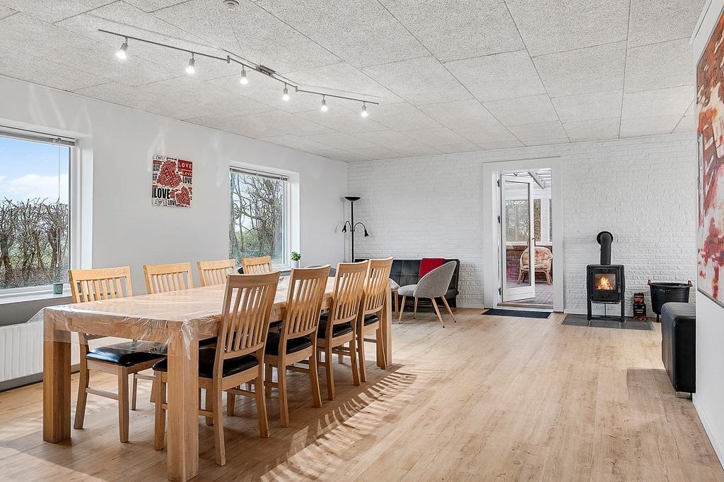 Forestil dig at træde ind i et sommerhus, hvor første blik fanges af en smuk vandudsigt gennem store vinduer – lige her hos Arnbjergvej 47 på Als. Inde i udestuen med brede glasfacader kan du lade dig opsluge af rolige bølgers bevægelse, mens du varme dig ved brændeovnen på kølige aftener. Den stemningsfyldte udestue er husets hjerte, hvor morgenkaffen eller aftenvinen føles ekstra nærværende, når lyset danser på vandet og skaber glimt i glasset. Sommerhusets charme forstærkes af sin hyggelige indretning – med bløde farver, komfortable møbler og små detaljer, der skaber en hjemlig stemning med masser af sjæl og hygge. Her kan familier med kæledyr føle sig fuldt velkomne, for sommerhuset er dyrevenligt og inviterer både to- og firbenede gæster til en ferie i fællesskab.
