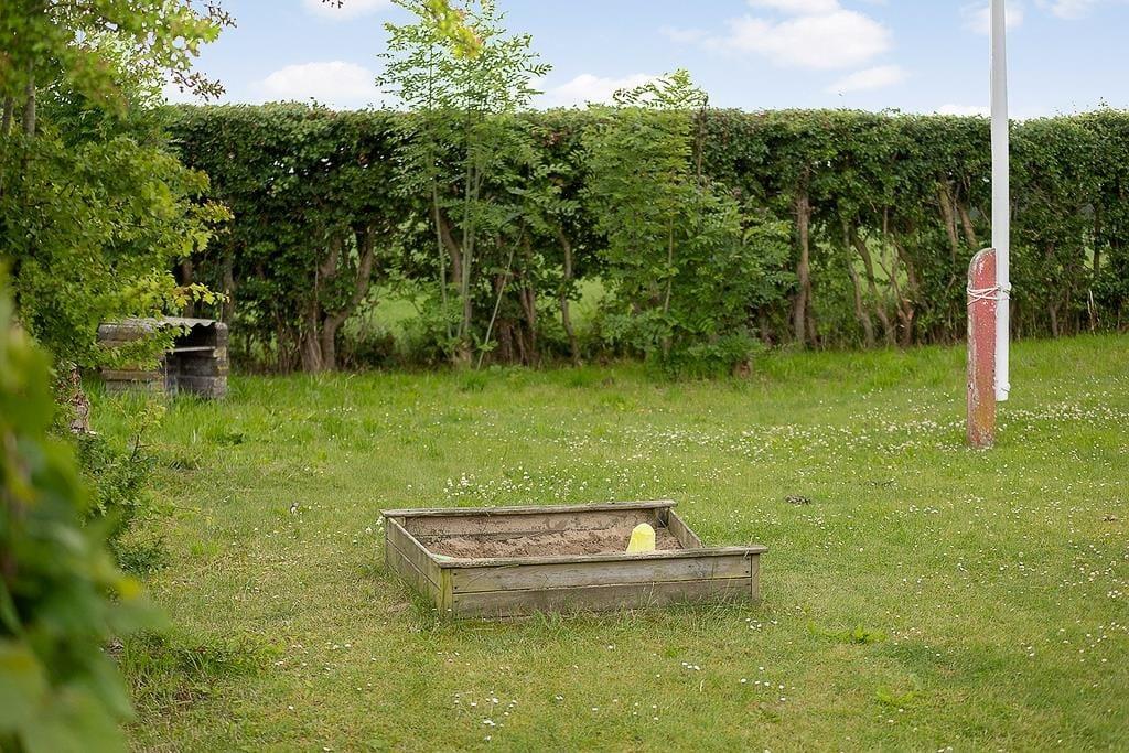 Udenfor breder sig en fredfyldt, landlig have omgivet af grønne marker og åbne vidder – herfra har du direkte adgang til en terrasse, hvor du kan dæmpe dagen med duften af græs og sommerfuglenes sagte summen. Vandets spejl ligger kun få skridt væk, og i havens udesalon kan du tage en duftende kop kaffe, mens duften af brænde fra aftenen, der venter, vinder frem. Og når sulten melder sig, står grillen klar til at tilberede friskfanget fisk eller sæsonens grønt under åben himmel. Her mærker du sola varme huden, hører fuglene synge i trætoppene – og får følelsen af en ferie, der inviterer til både ro og små, spontane eventyr med familien og hunden.