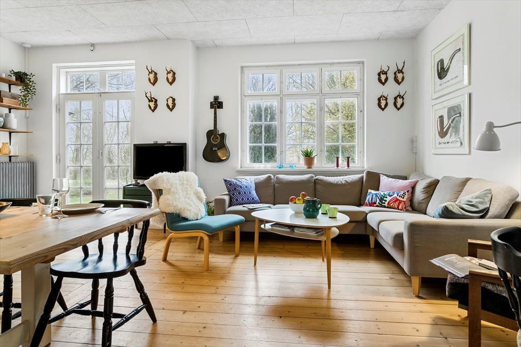 Huset er stort og med mange rummelige værelser, så der er plads til familiemedlemmer og venner i alle aldre. I kan fordele jer i huset, så du kan trække dig uforstyrret tilbage, og samtidig kan der være gang i mange aktiviteter på én gang. De mindste gæster kan lege uden at forstyrre de voksne, der måske planlægger jeres oplevelser på Samsø. Huset er flot ombygget, så det fremstår lyst og funktionelt, og samtidig er der bevaret charmerende detaljer fra tiden, hvor huset fungerede som en skole. Både børn og voksne føler sig godt tilpas her i de hyggeligt indrettede soveværelser og opholdsrum.
