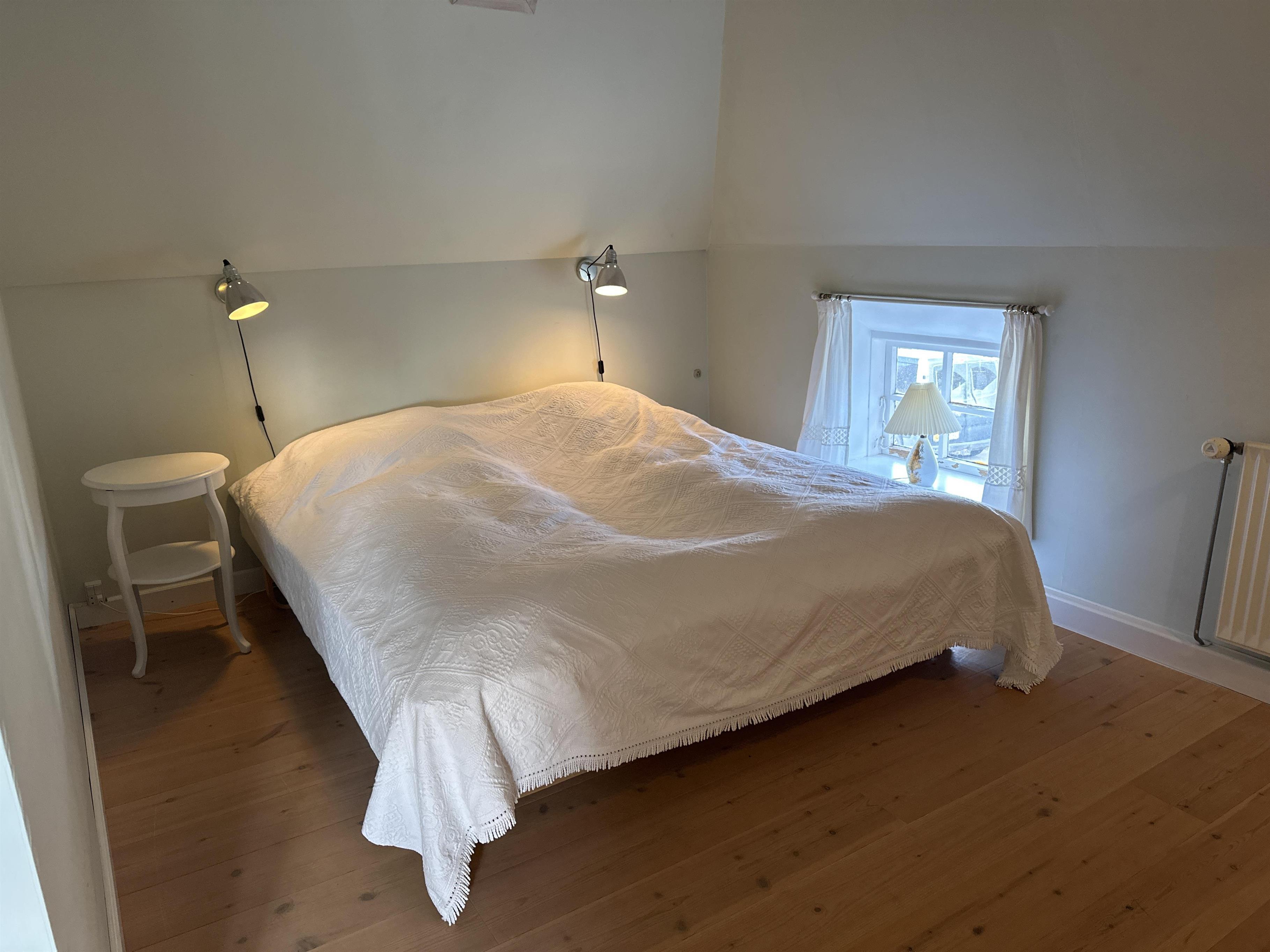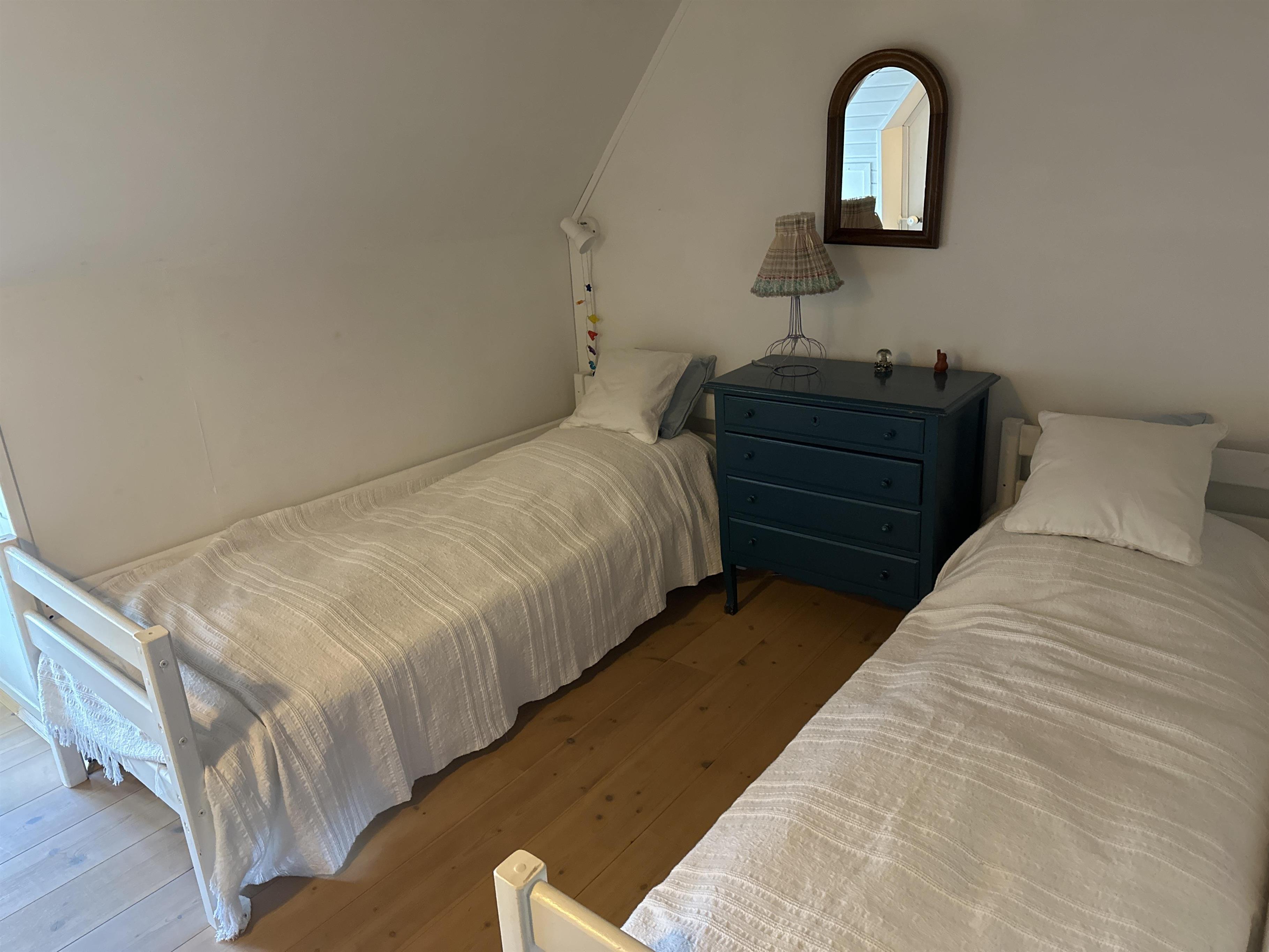 På førstesalen venter hele fire soveværelser, fordelt på tre med dobbeltsenge og ét hyggeligt værelse med to enkeltsenge i børnestørrelse – perfekt til de små gæster. Huset rummer let op til 6 personer og giver mulighed for både fællesskab og privatliv.