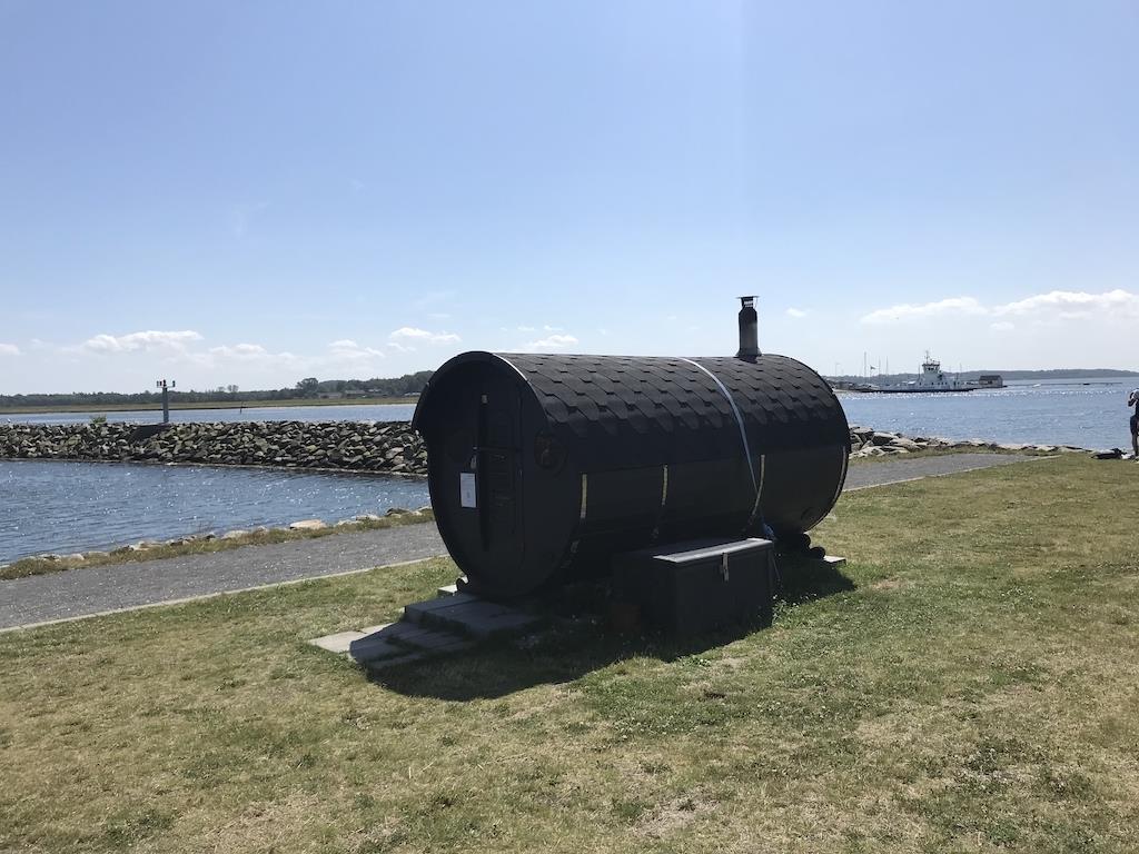 På lystbådehavnen er der en udendørs sauna med fjordudsigt. Lodshusets lejere har fri adgang til saunaen. Den er brændeopvarmet, og der forefindes brænde ved saunaen. Der skal tændes op ca. 1 time før brug. Hop i bølgen blå og slut af med en dejlig saunatur, hvor du kan nyde den flotte udsigt ud over fjorden.