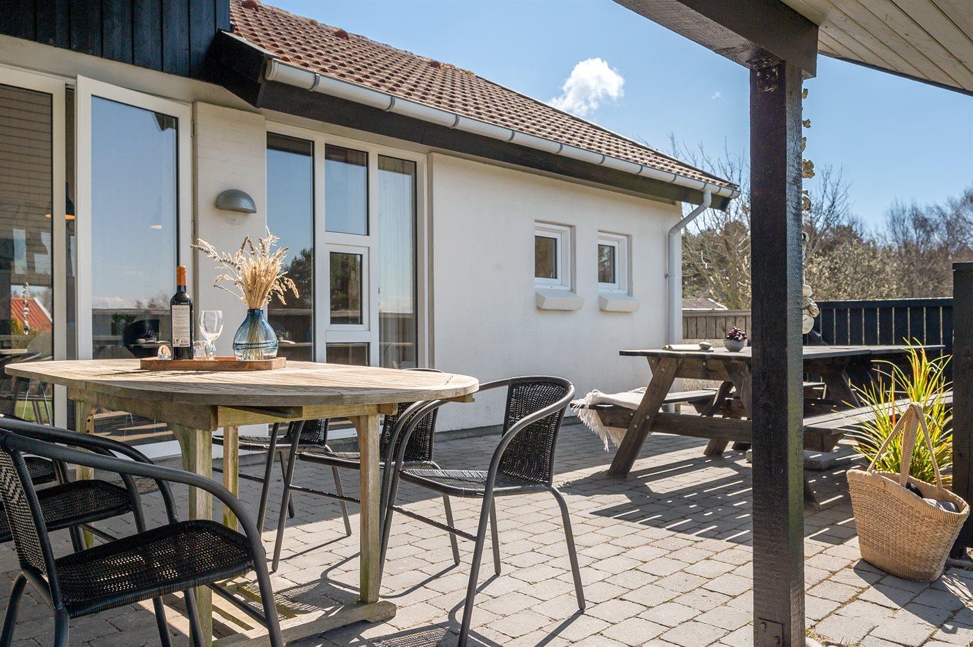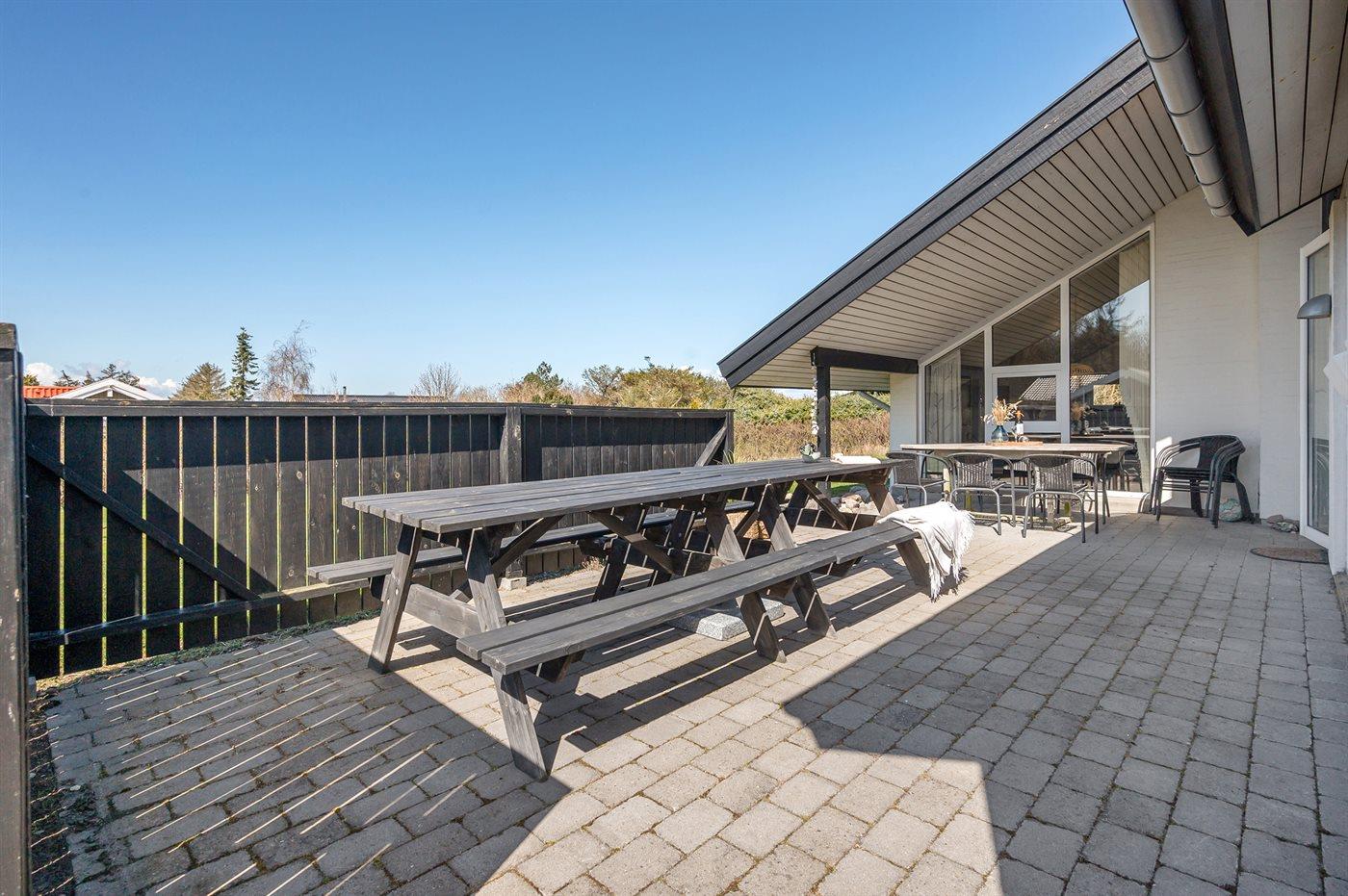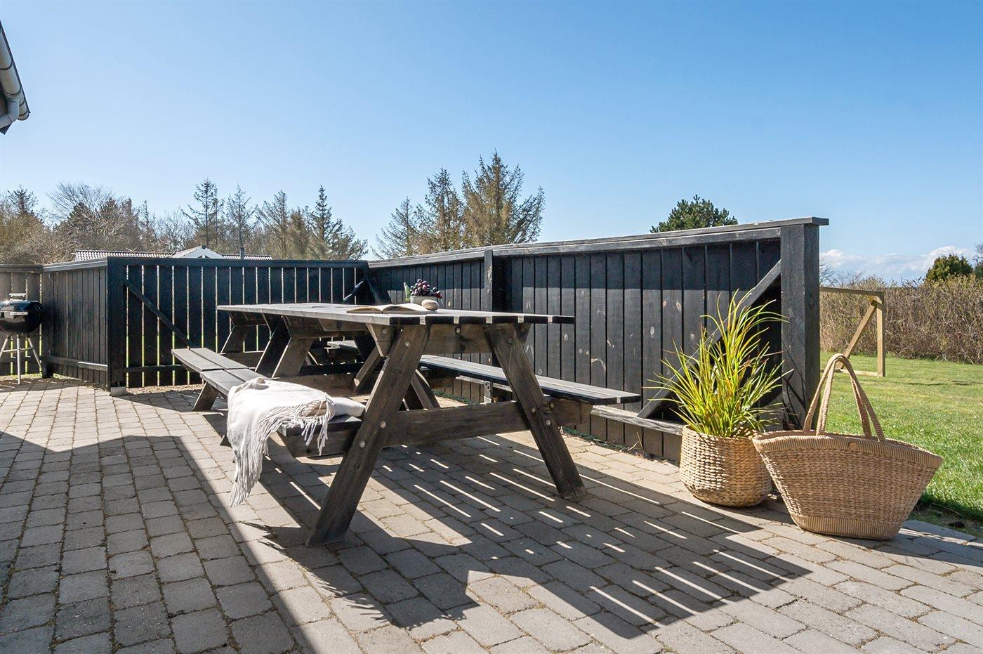 Ferieboligen er beliggende på en 1207 m² stor havegrund. Der er 100 m til havet. Der er en sø i en afstand af 500 m. Nærmeste forretning er beliggende i en afstand af 5000 m. Der er en golfbane i en afstand af 7300 m. Til ferieboligen hører 50 m² terrasseareal. Desuden er der 14 m² overdækket terrasse. Der er redskabsrum. Fodboldmål. Der ligger en legeplads i en afstand af 100 m. Grill til rådighed. Parkering ved ferieboligen.