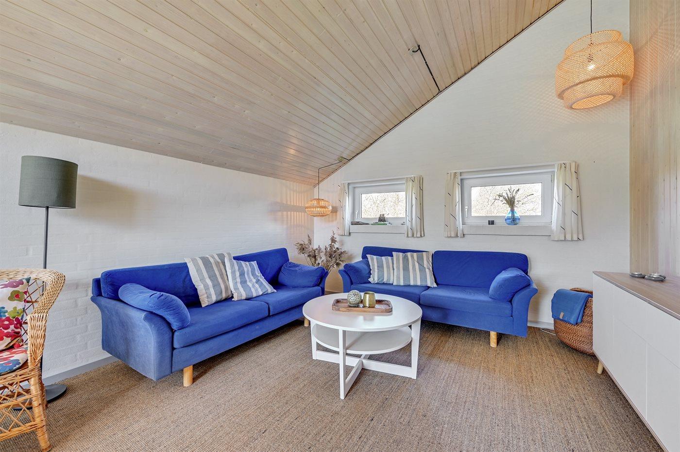 Der er i alt 4 soveværelser. Sovepladserne fordeler sig på: 6 sovepladser i dobbeltsenge. 2 sovepladser i enkeltsenge. 2 sovepladser på madrasser. 2 af disse sovepladser befinder sig på husets hems. Derudover er der 1 stk. barneseng.