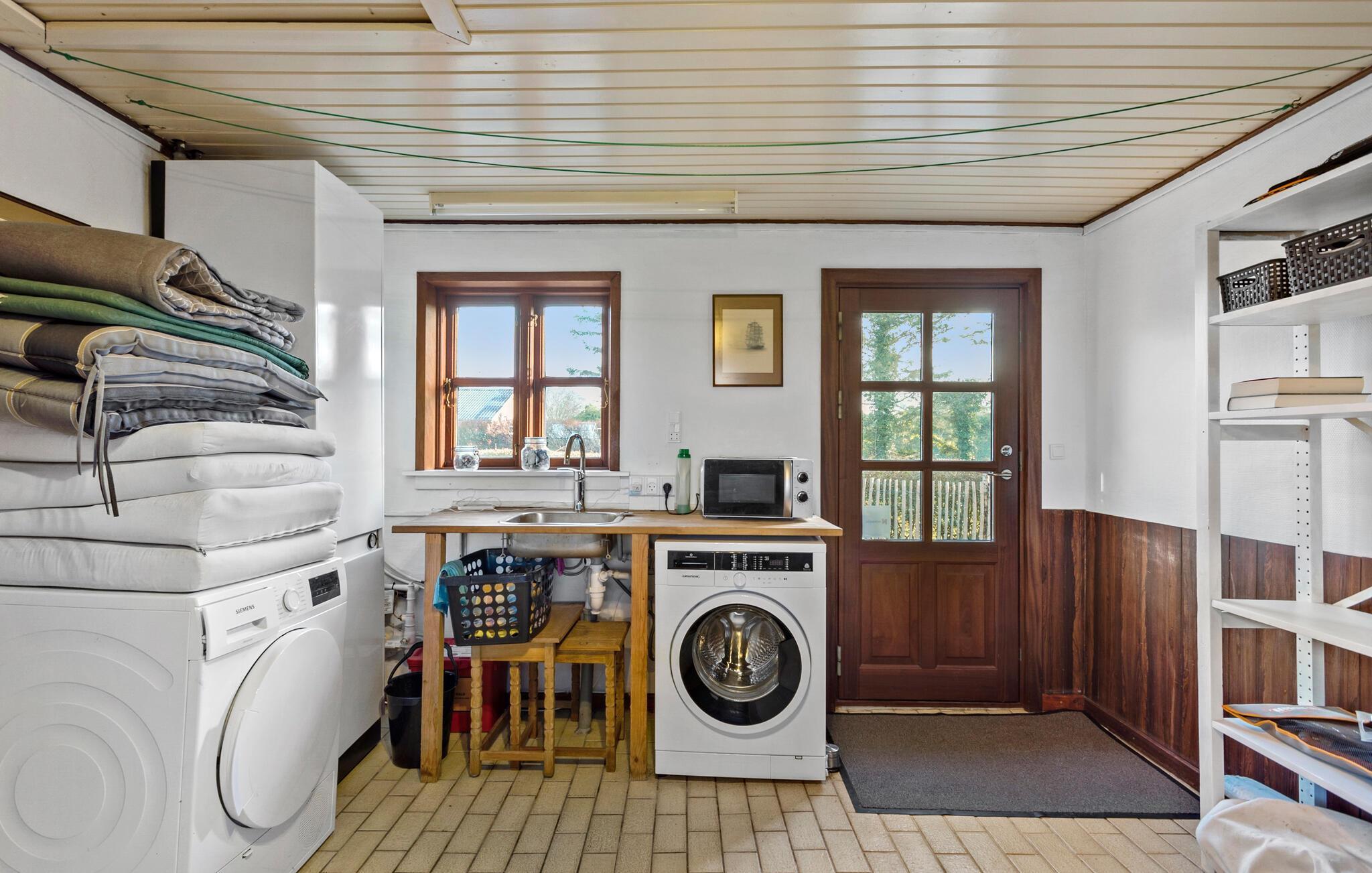 Huset har et rustikt islæt med en indretning der er god blanding af både nyt og gammelt. Der er klinker på badeværelset og vinyl på gæstetoilettet og ellers har resten af huset trægulve uden faste tæpper. Baderum i stueetagen har adgang fra bryggers som ligger i forlængelse af køkkenet. Trappeopgang til førstesalen findes bag dør i køkkenet. Fra feriehuset er der ca. 6,5 km til Bagenkop, Langelands sydligst liggende by, der med sit hyggelige havnemiljø bestemt er et besøg værd. På vejen ligger en af Langelands større seværdigheder: Koldkrigsmuseet Langelandsfortet. Det sydlige Langeland byder desuden mulighed for golf og så er der rigeligt med dejlige naturområder, hvor det er muligt at iagttage det rige fugleliv. Som noget helt unikt for området er der to områder, hvor der er udsat vilde heste til afgræsning af arealerne. På øens lange kystlinje findes mange børnevenlige strande og der er ligeledes gode muligheder for fiskeri. Sydspidsen af Langeland, med Dovns Klint og den meget specielle natur, er på alle årstider et besøg værd.