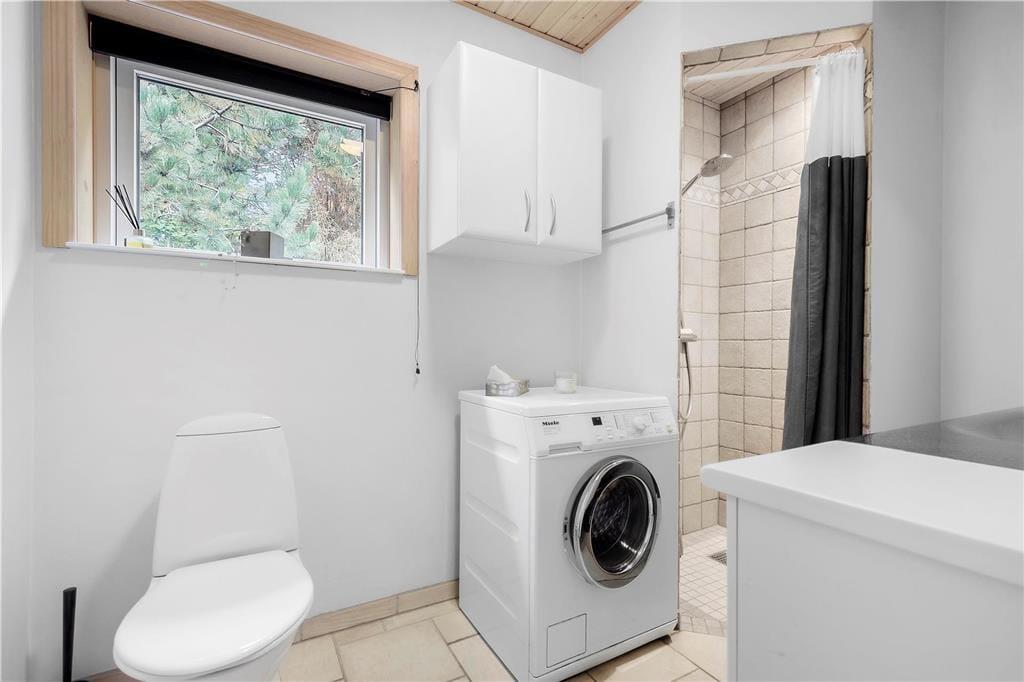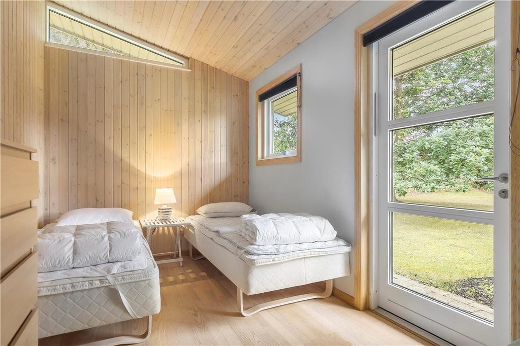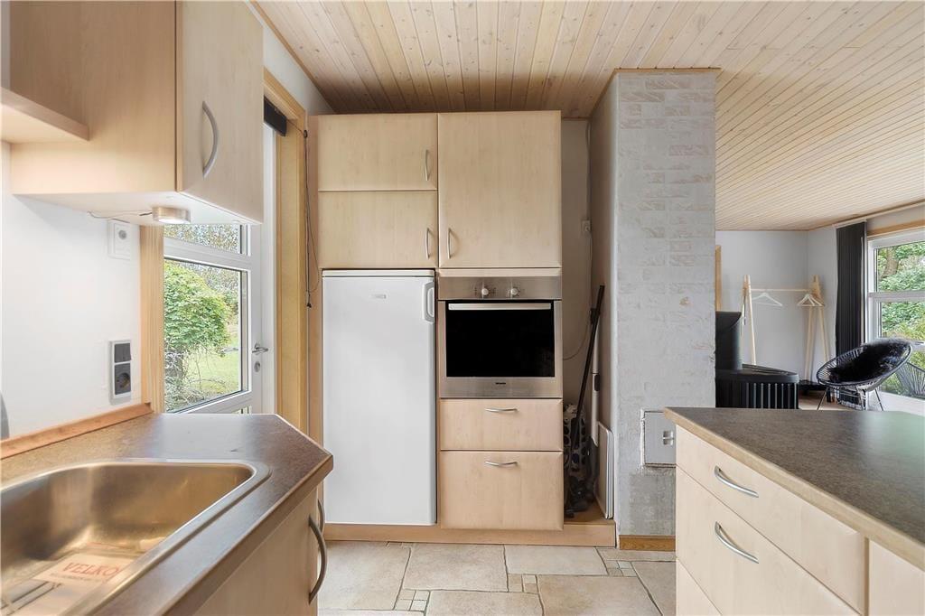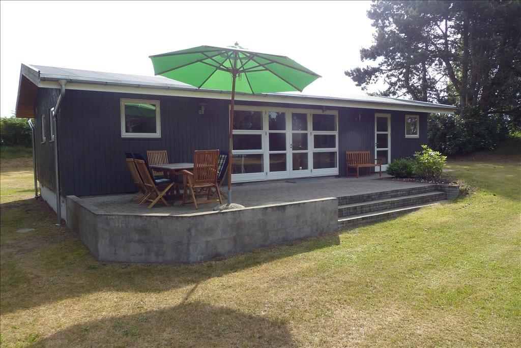 Sommerhuset ligger tilbagetrukket på en dejlig plan grund med et par store træer og har et flot vinduesparti, hvor du fra den åbne stue kan nyde udsigten til haven fra både spisebordet og sofaen. Sommerhuset er lyst indrettet, med et moderne tvist. Mens brændeovnen, der er placeret midt i huset mellem det åbne køkken og stuen, sørger for varmen, kan du finde et spil frem til glæde for hele familien. Er der sommer og sol, så slå dørene op til terrassen og lad solens stråler sende lys og varme ind.