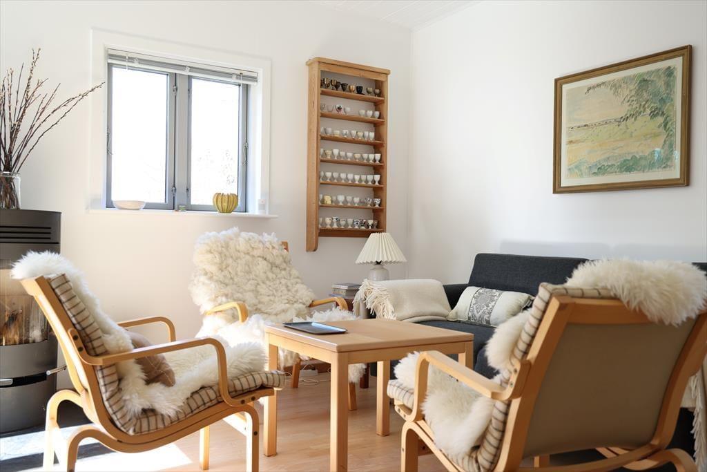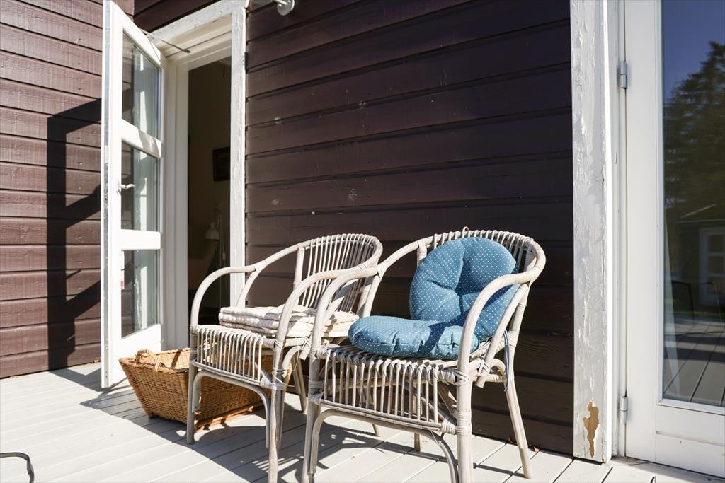 I dette sommerhus er der både hygge, charme og ægte feriestemning. Her kan sjælen plejes og der kan stresses af. Køkken og stue er tæt forenet, så står du for madlavningen kan du sagtens tage del i snakken med familien i stuen. På de kølige aftener kan der tændes op i brændeovnen og hygges med en god bog i sofaen med et tæppe omkring. Fra det ene soveværelse er der udgang til den store træterrasse.