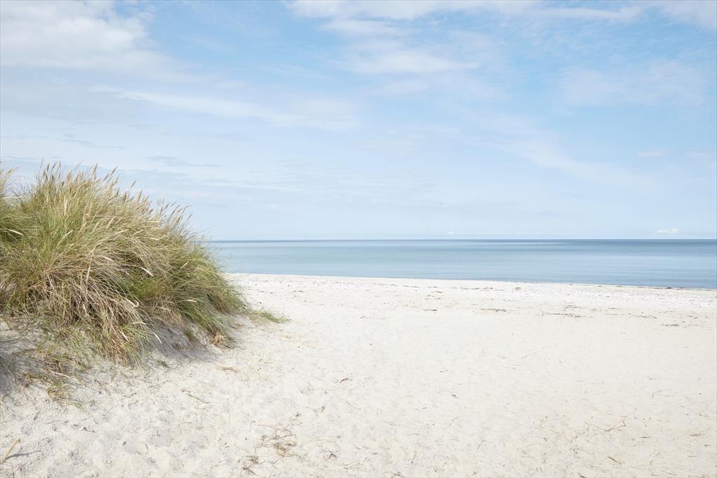 Sommerhuset er beliggende i et roligt område, så der er rig mulighed for at sidde i ro og mag og nyde en god frokost på terrassen. Den store terrasse med udgang fra stuen er sydvest-vendt så kommer masser af sol eftermiddag og aften. Udendørs kan timerne gå for børnene med at klatre i træer, lege gemmer eller fanger, og når det bliver tid til en dukkert, så er den rigtig gode sandstrand kun få minutters gang fra huset.