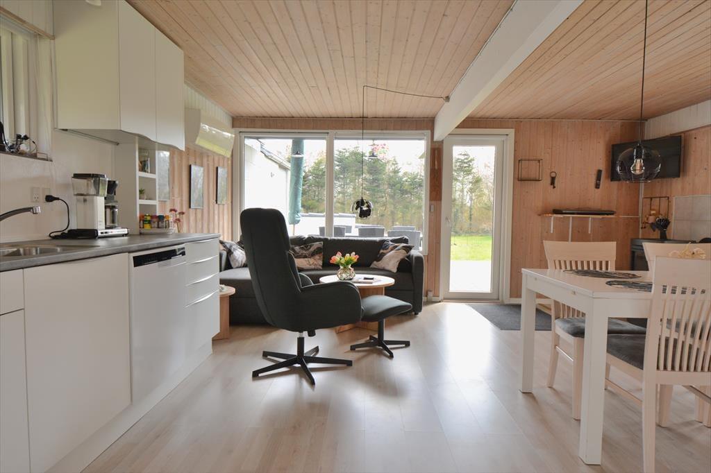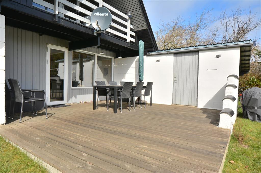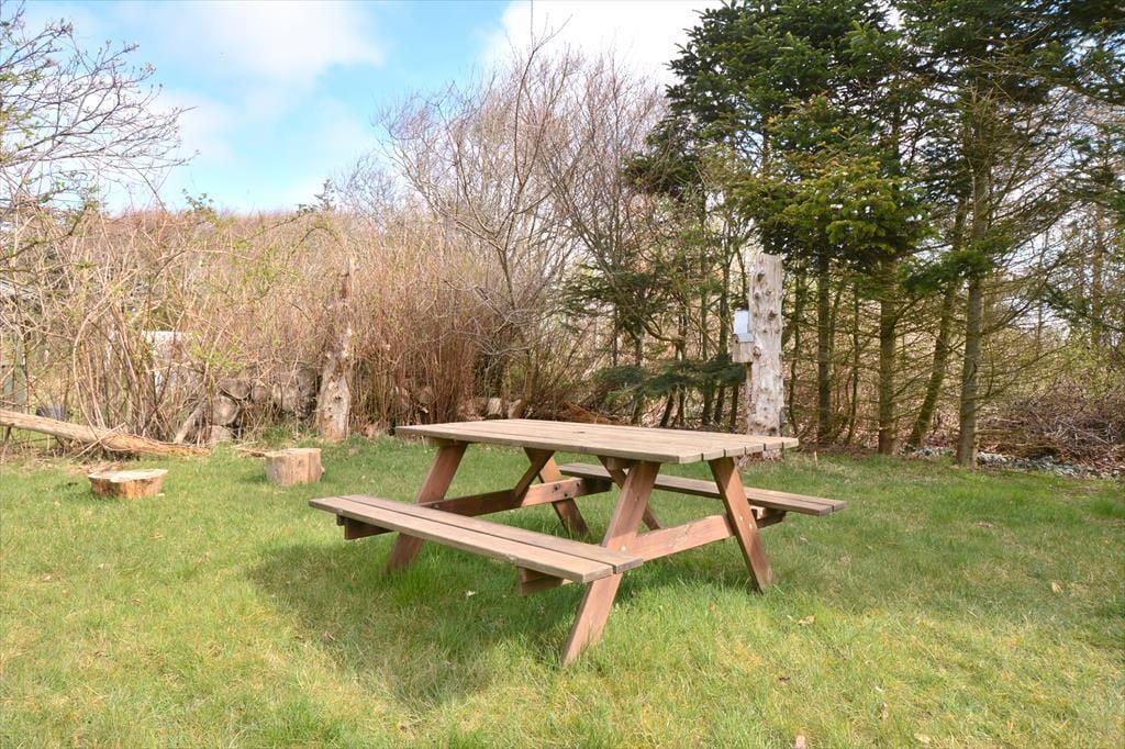 Udenfor finder I en stor, delvist lukket grund i et roligt og børnevenligt område, ideelt til leg og afslapning. Huset ligger tæt på Nissum Fjord og lokale naturoplevelser, hvor både børn og voksne kan nyde legeplads, cykelture og smukke naturruter. Den nærliggende by Sdr. Nissum tilbyder dagligvarebutik, mens Thorsminde byder på spændende udflugtsmål.