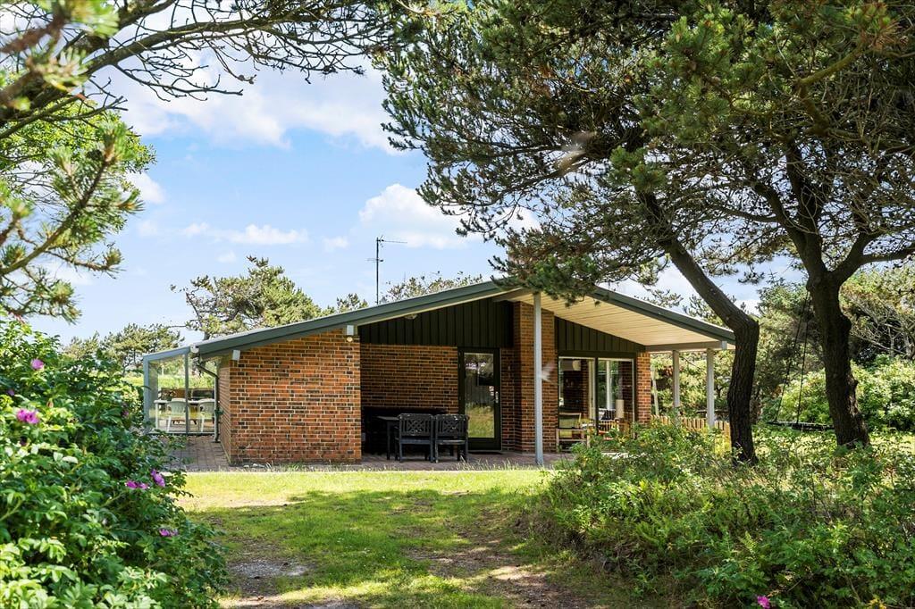 Sommerhus i Nr. Fjand, Vestjylland, med plads til 6 voksne og 2 husdyr. Der er en hyggelig indretning med bl.a. brændeovn, og du finder desuden vaskemaskine og opvaskemaskine i boligen.