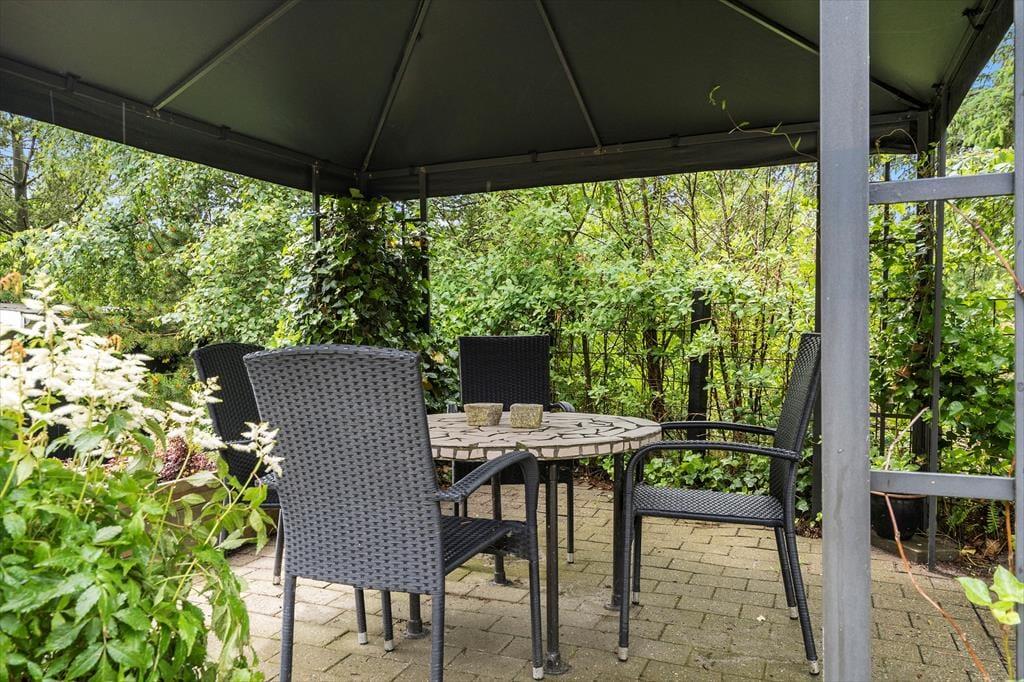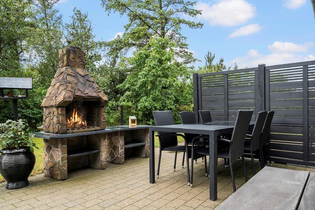 Dette dejlige feriehus ligger på en fortryllende grund hvor I har rig mulighed for at nyde livet udendørs, her er der plads til at spille fodbold eller blot nyde den dejlige sol i en af liggestolene på den skønne terrasse. Hvis regnen en dag trommer på taget kan I sætte jer ind under den dejlige pavillon og nyde lyden og duften af den kølige regn en skøn sommerdag. Når aftensmaden skal laves så smid bøfferne og grøntsagsspydende på grillen og nyd den lækre duft af mad der blander sig med den dejlige varme fra den skønne udendørs pejs. Sæt jer op på den smukke balkon og nyd den fantastiske udsigt som man ikke kan andet end at synes om.