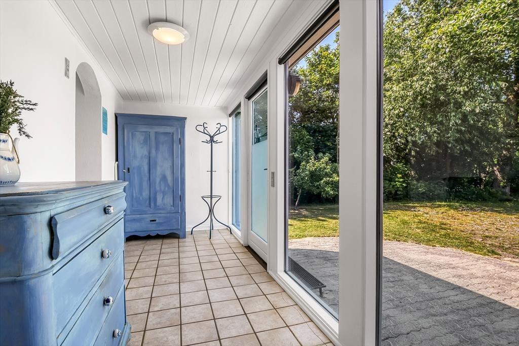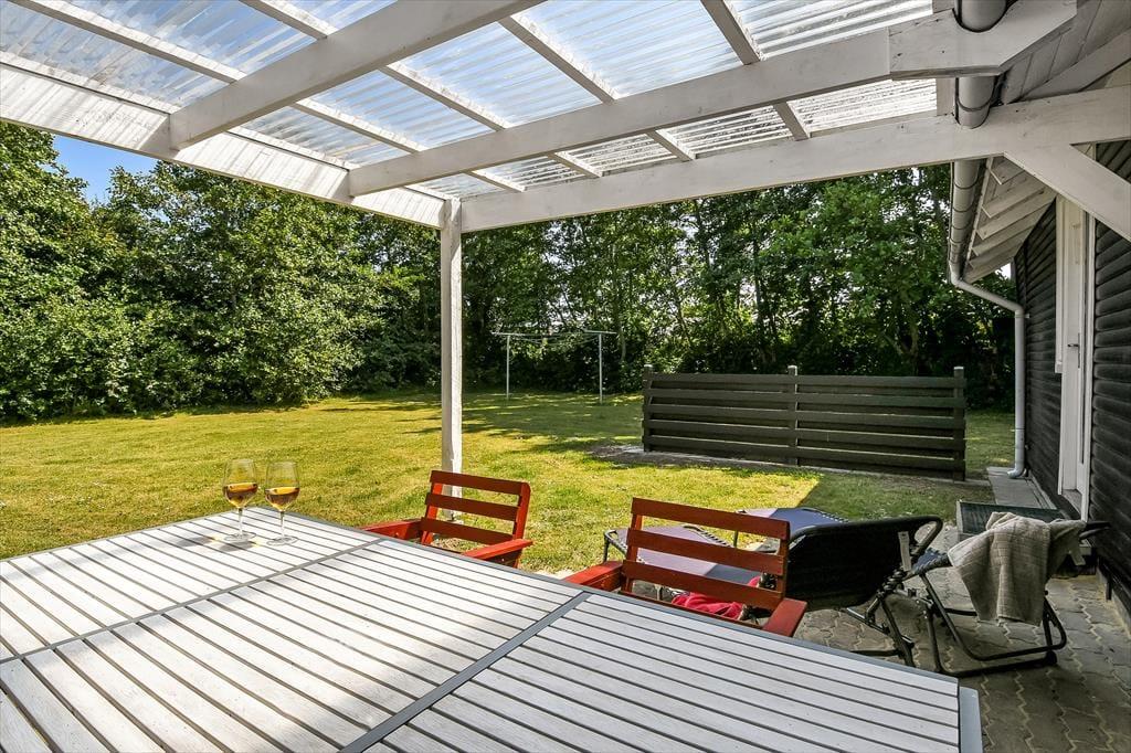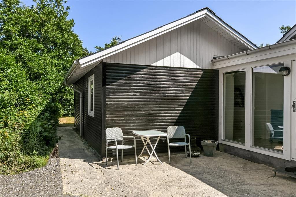 Fra stuen er der direkte udgang til en stor, åben terrasse og en ugeneret have med masser af plads til leg, afslapning og gode stunder under åben himmel. Her er der højt til himlen og plads til at trække vejret. Den store naturgrund indbyder også til eventyr for familiens hund, som er mere end velkommen. Haven er ikke indhegnet, men omgivelserne er fredelige og grønne – perfekte til en afslappende ferie i det fri.