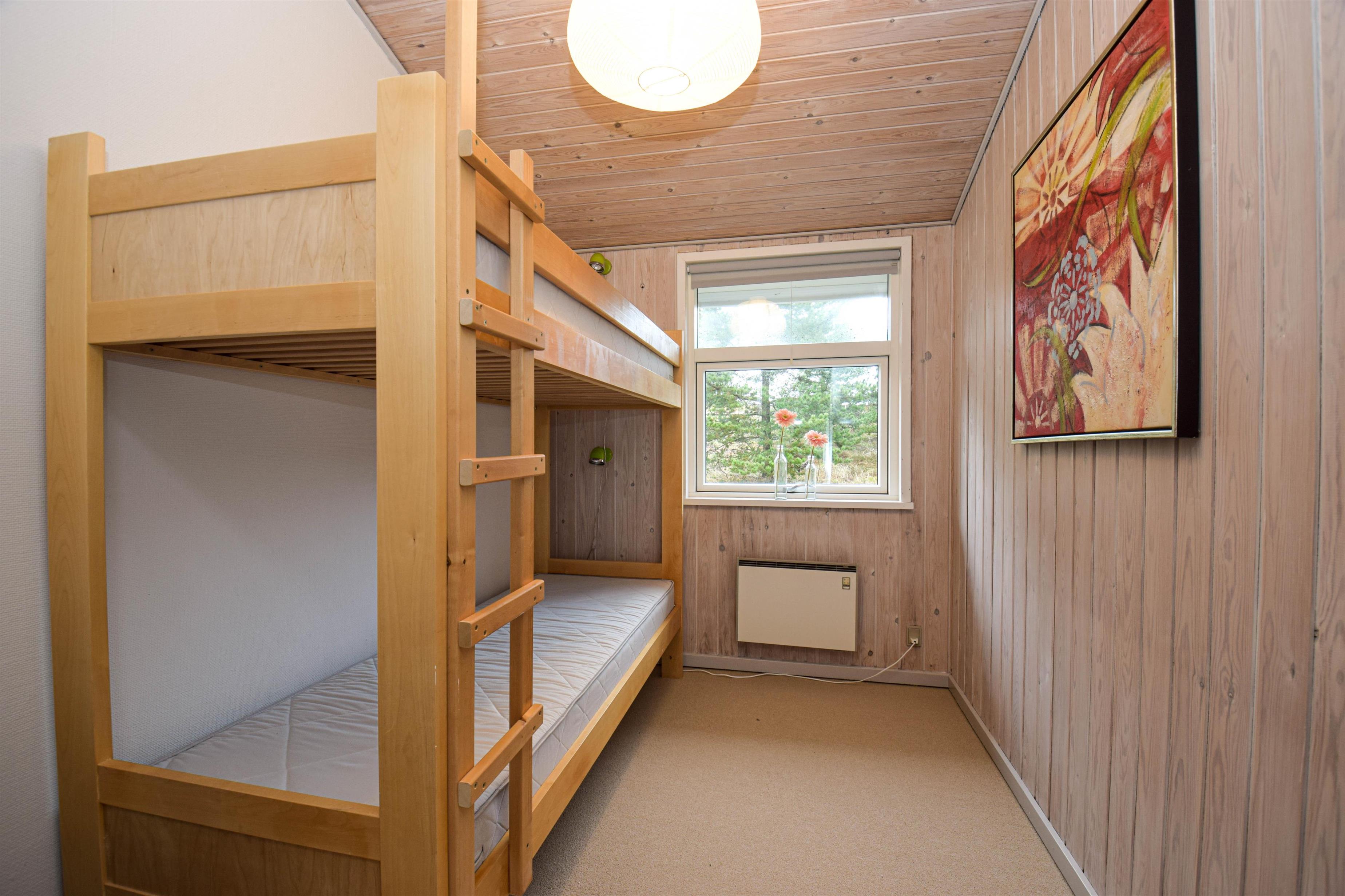 De tre soveværelser er indrettet med en god dobbeltseng, to enkeltsenge og en køjeseng, så der er plads til både par og familie.