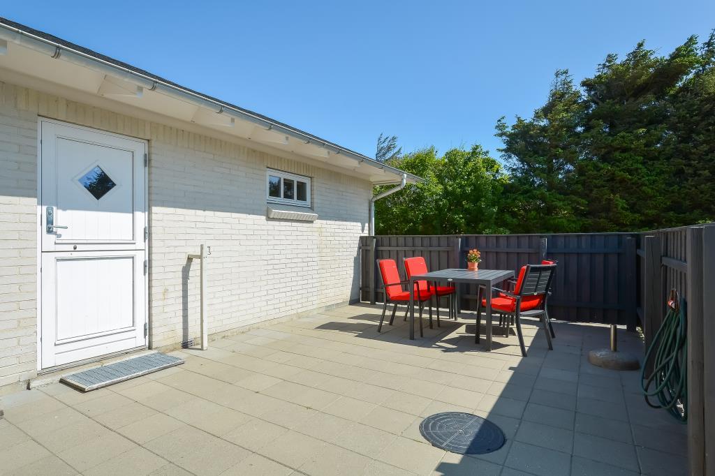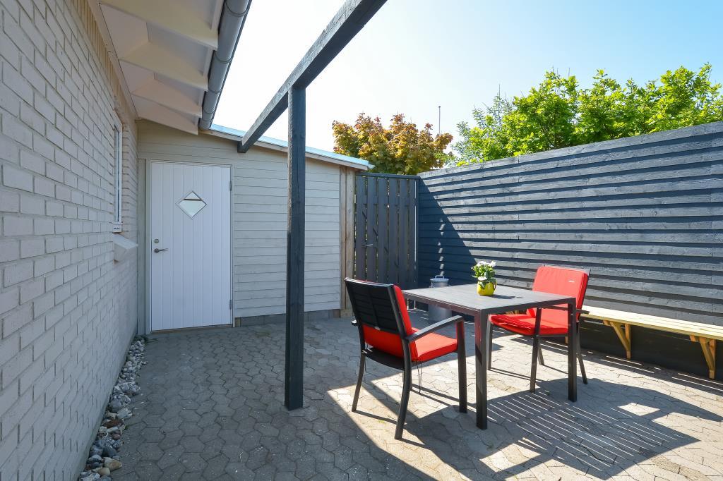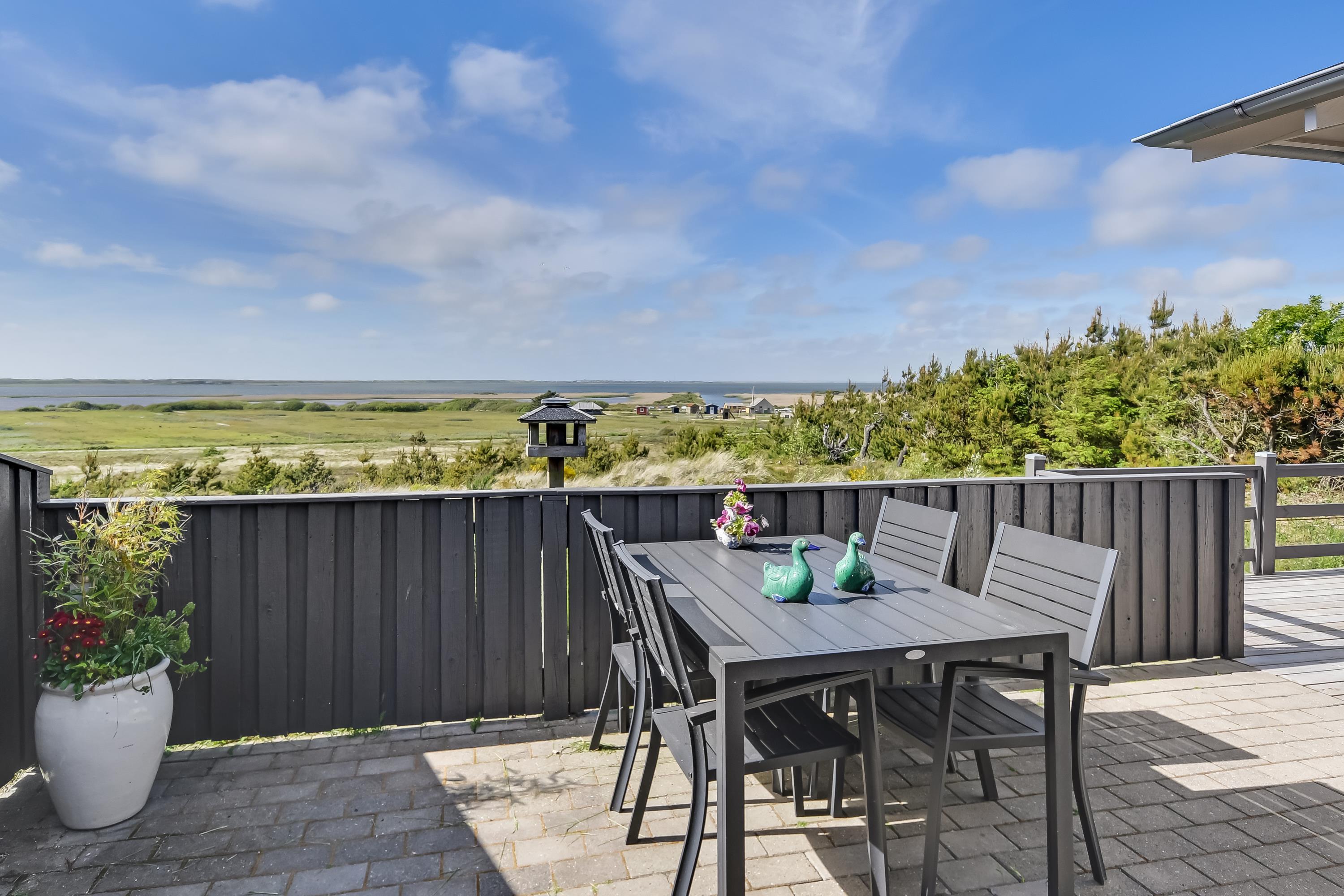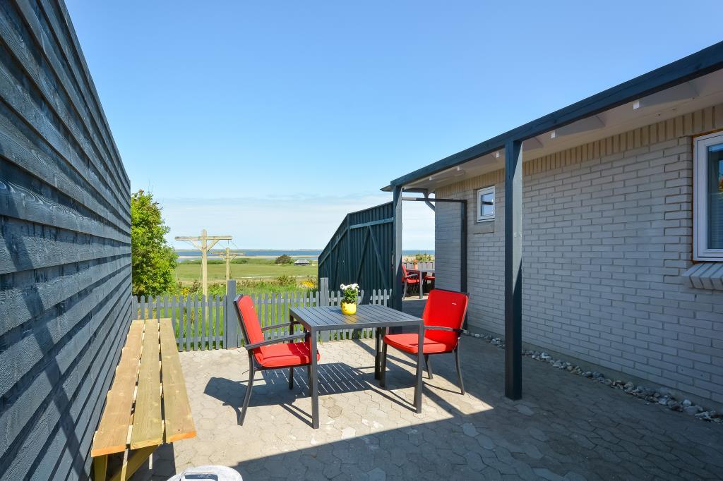 Fra spisepladsen er der udgang til den vestvendte terrasse, hvor du kan nyde solnedgangen over vandet.