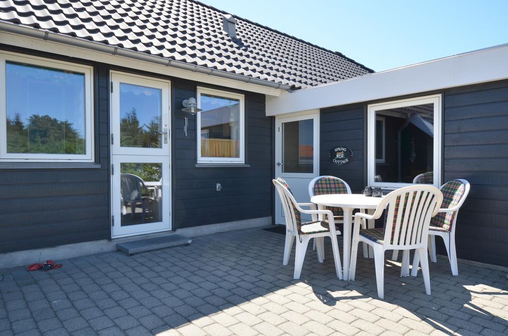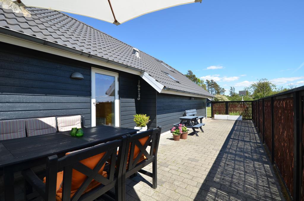 Grunden er særdeles velplejet og byder på flere hyggelige lækroge og terrasser, hvor I kan nyde solen fra morgen til aften.