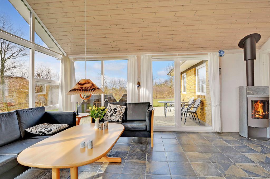 Flot fritidshus nær Nissum Fjord med sauna, stor terrasse og moderne faciliteter for en afslappende ferie.