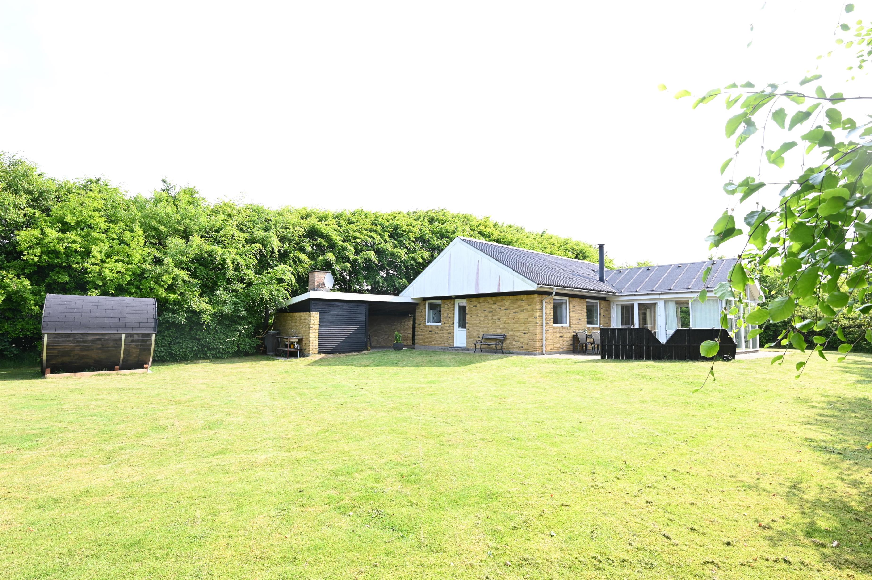 Skal ferien være afslappende i gode omgivelser, så er det dette flotte feriehus I skal bestille. Huset har bl.a. saunatønde i den skønne have.