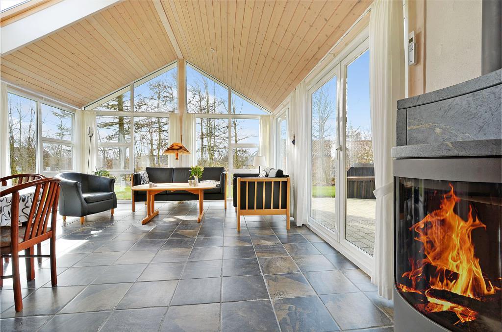 Indretning: Entre, soveværelse med dobbeltseng, værelse med 2 enkeltsenge, værelse med sovesofa. Dejligt badeværelse, åben køkken/stue samt stor lys udestue med klinkegulv og loft i kip. Fra udestuen er der udgang til en dejlig sydvendt terrasse, og dejlig stor carport.