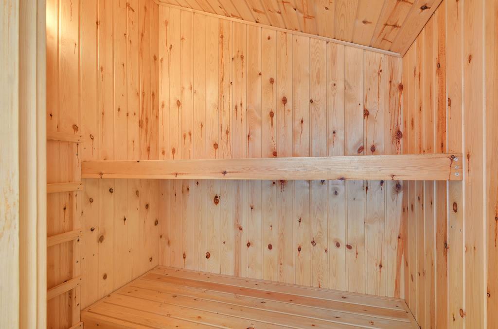 I det lyse og rummelige køkken-alrum er der både plads til madlavning, brætspil og afslapning. Den hyggelige stue med brændeovn og bløde møbler danner rammen om mange hyggelige aftener, og saunaen indbyder til ren afslapning efter en dag i naturen.
