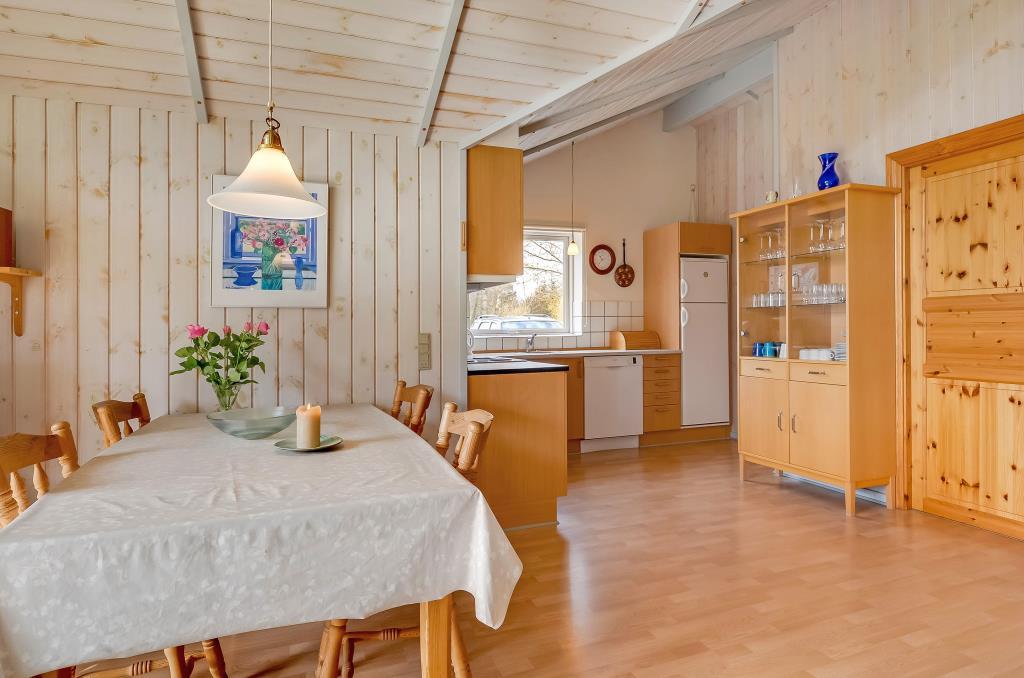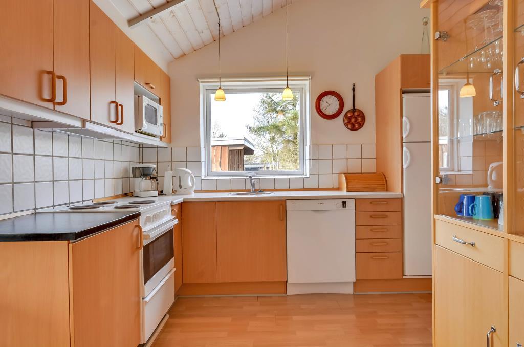 Køkkenet er godt udstyret og ligger i åben forbindelse med stuen, så man nemt kan være sammen – uanset om man laver mad, spiller spil eller nyder et glas vin efter en dag ved havet.