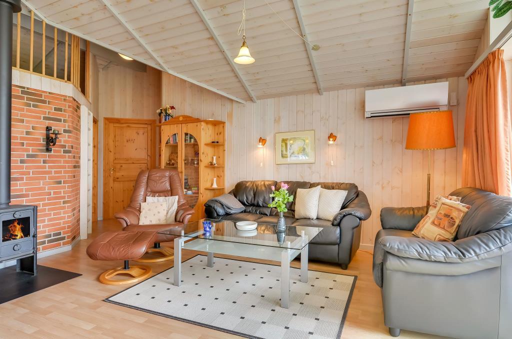 I stuen er der behagelige møbler, fladskærms-TV og en hyggelig brændeovn, der skaber den helt rigtige stemning på kølige aftener.