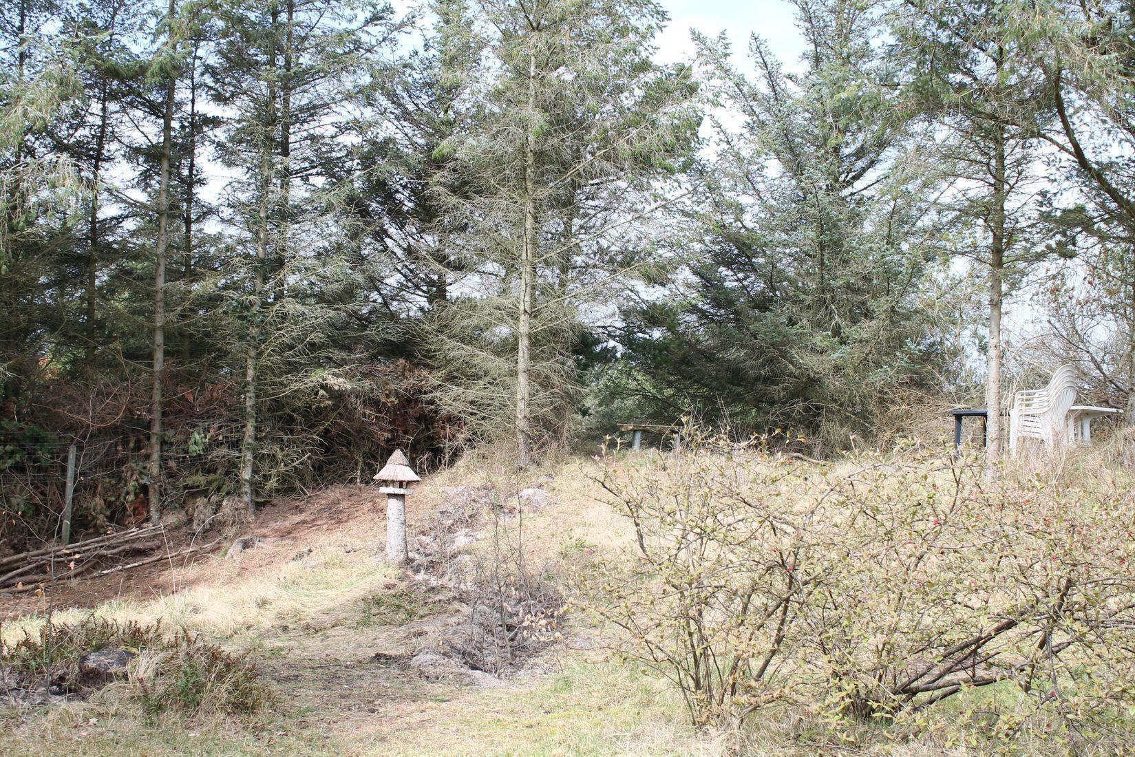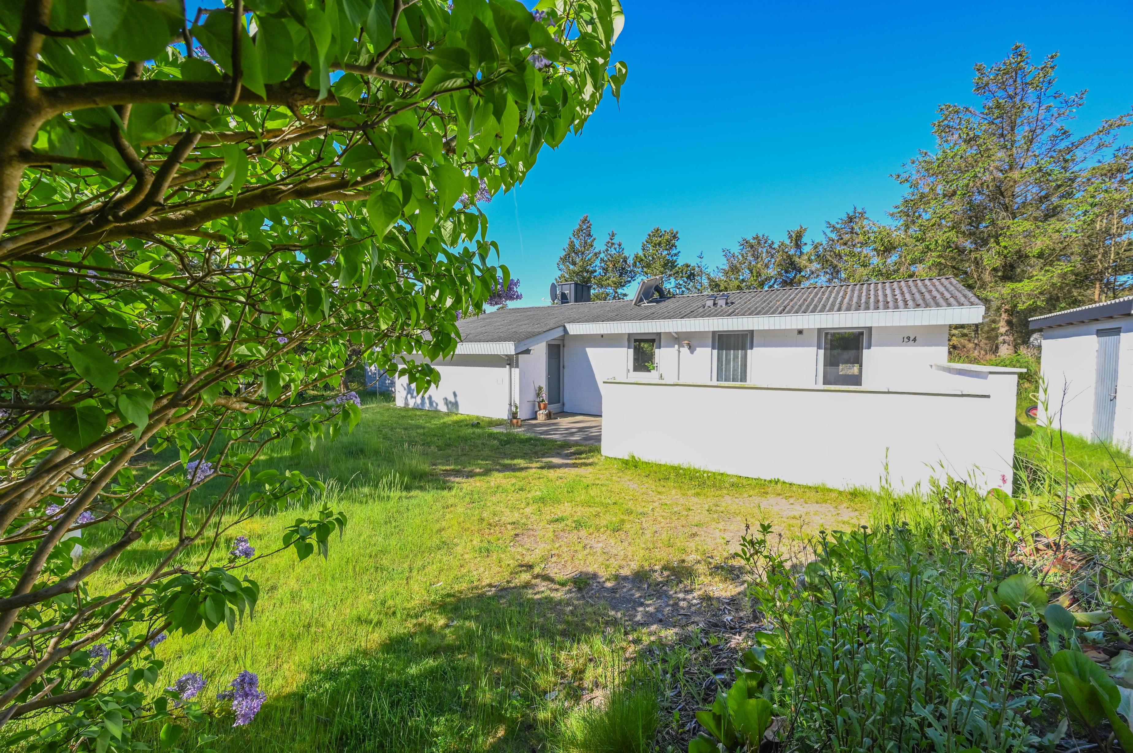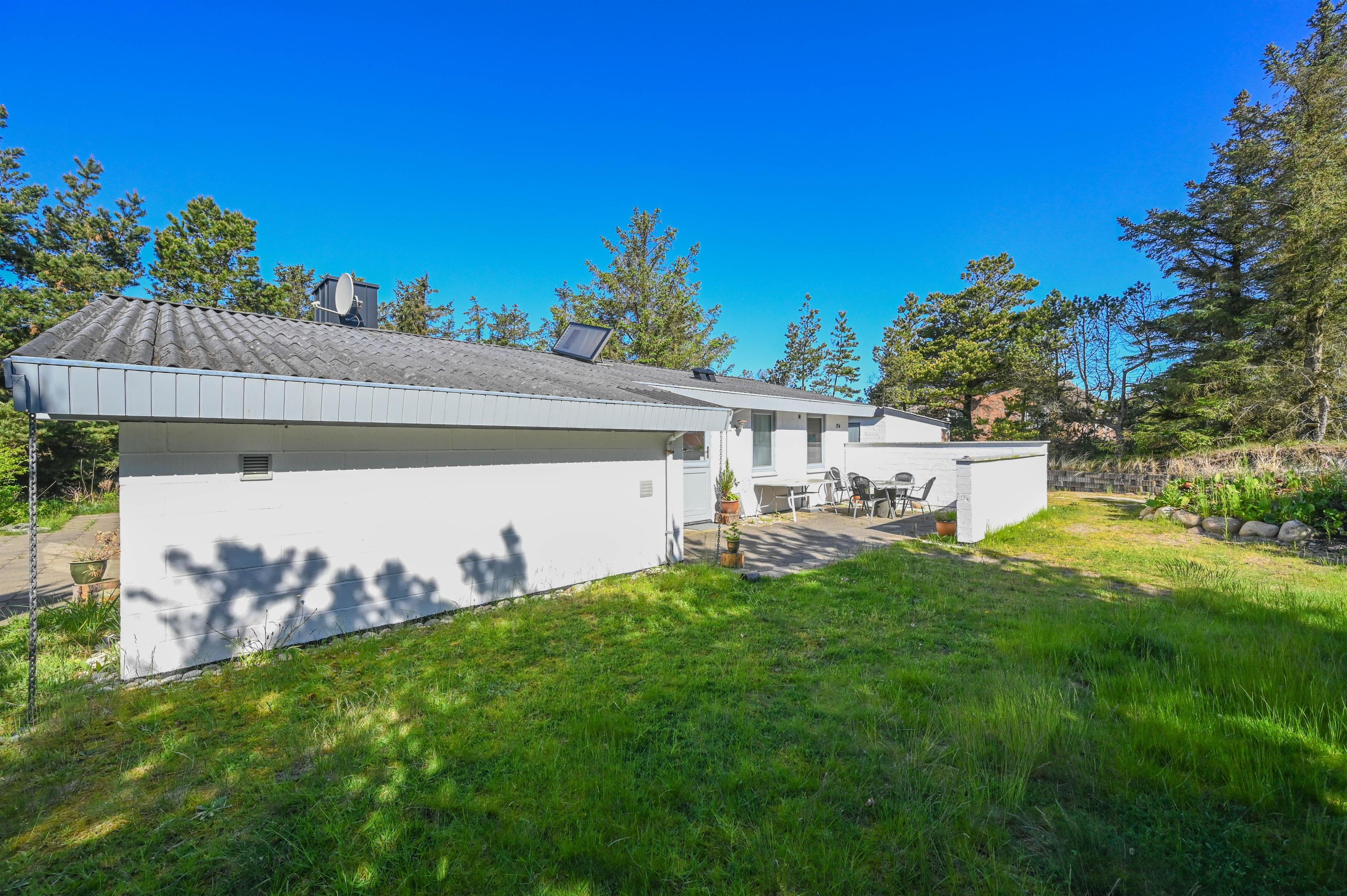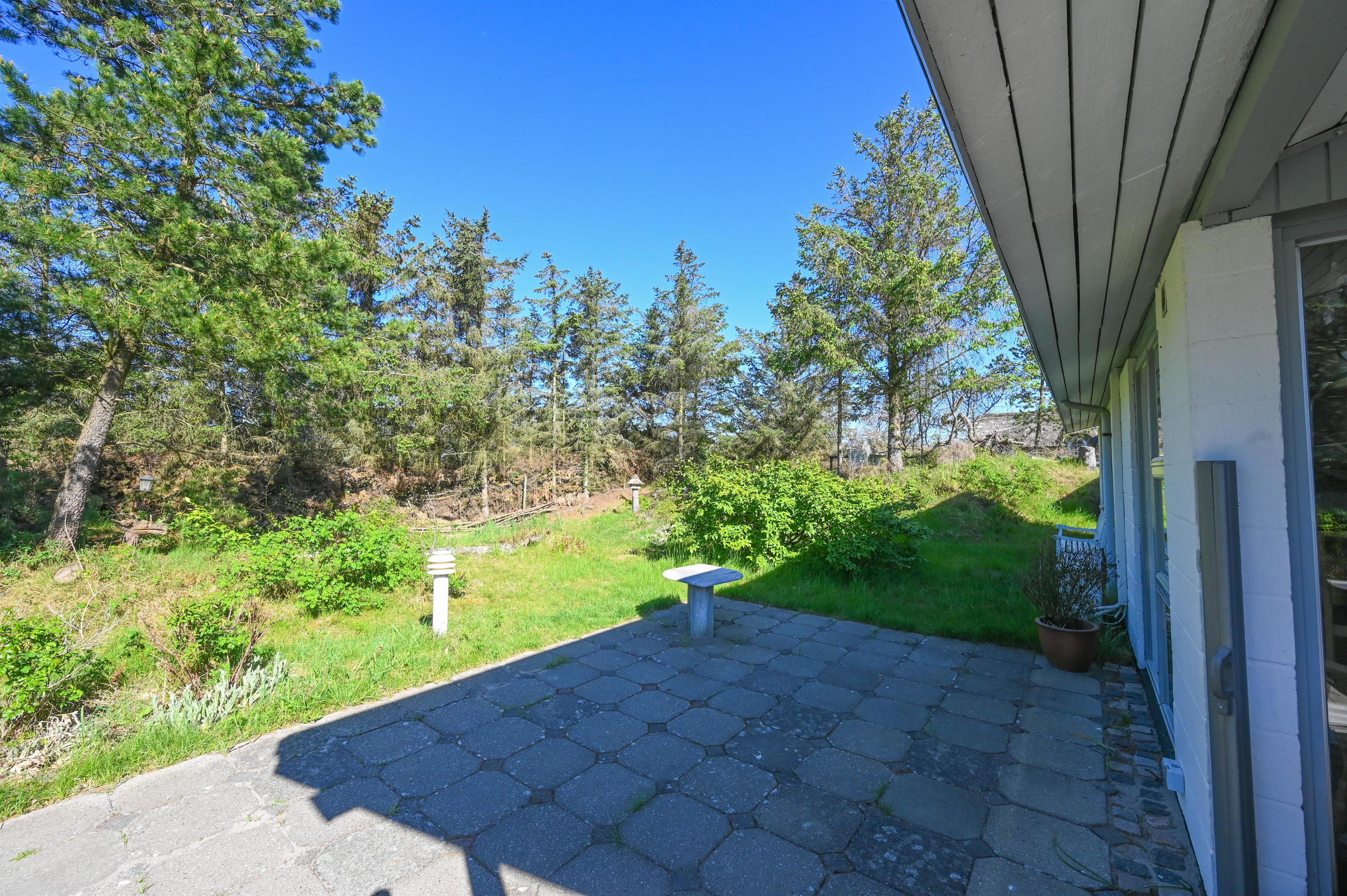 Omkring huset finder du to dejlige terrasser, hvoraf den ene er overdækket mod syd – ideel til lange sommerdage og hyggelige aftener uanset vejr. Her kan du nyde solen, stilheden og måske lyden af vinden i træerne.