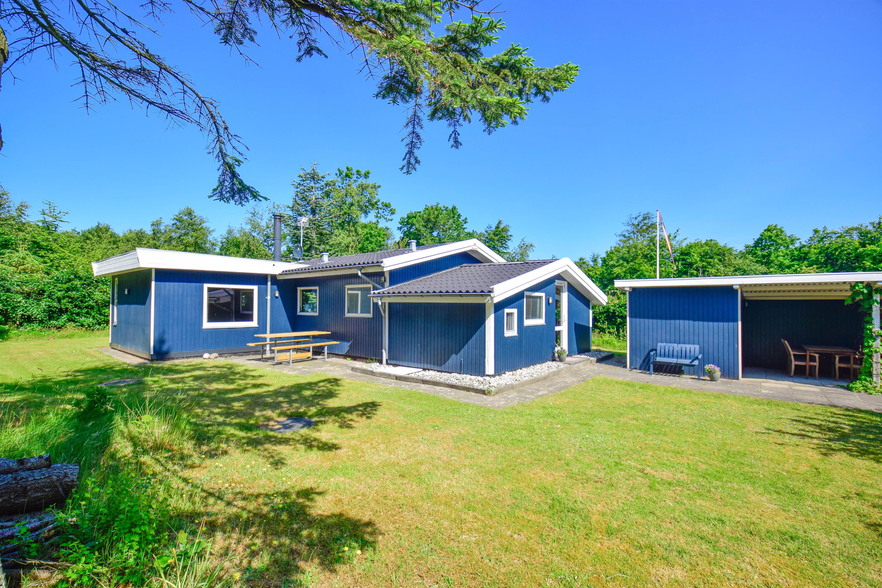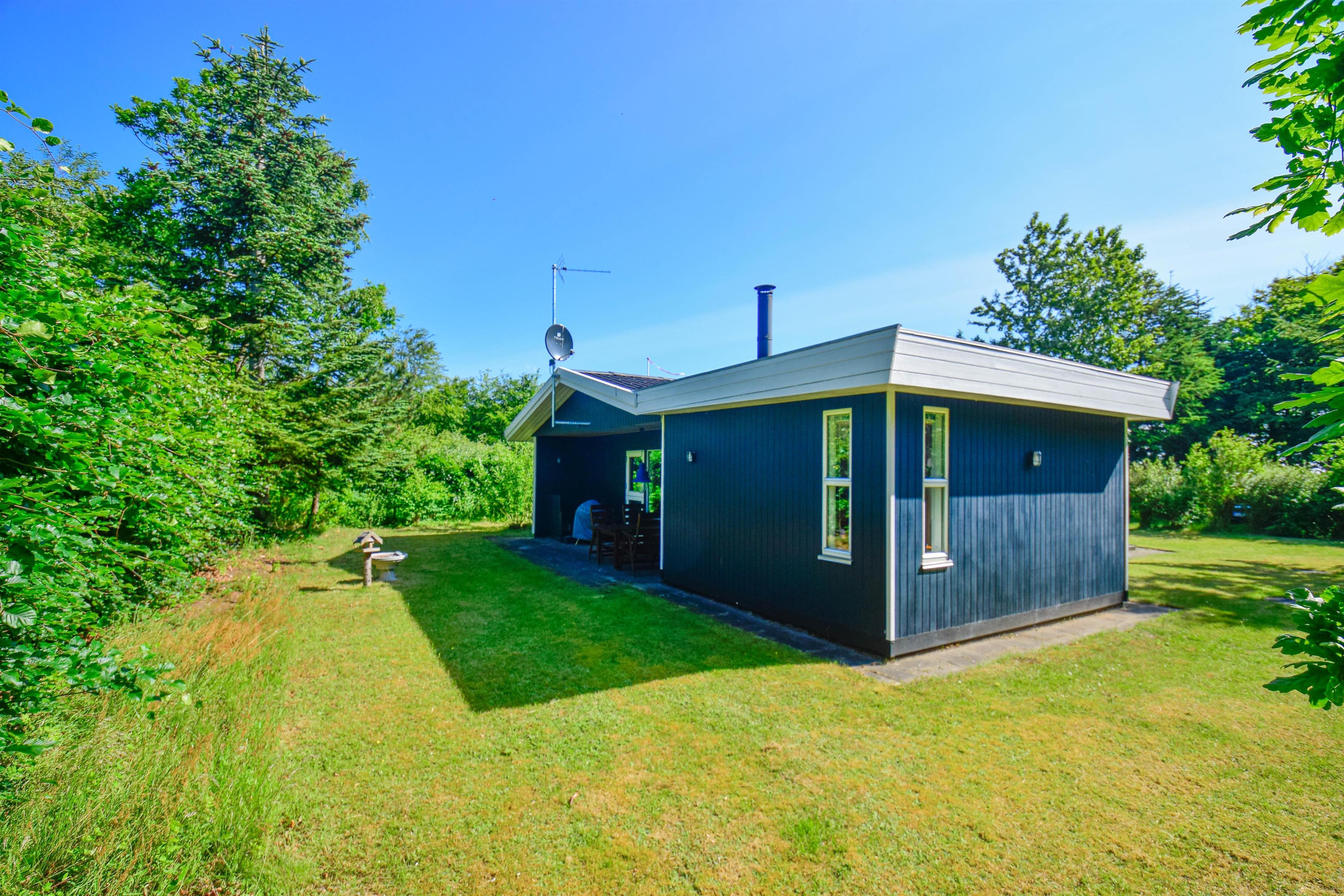 Huset er indrettet med hyggelige møbler og en varm atmosfære, og brændeovnen i stuen er med til at skabe den helt rigtige feriestemning – uanset årstid. Det er et oplagt valg for familien, der ønsker ro, nærvær og ægte sommerhusstemning tæt på naturen.