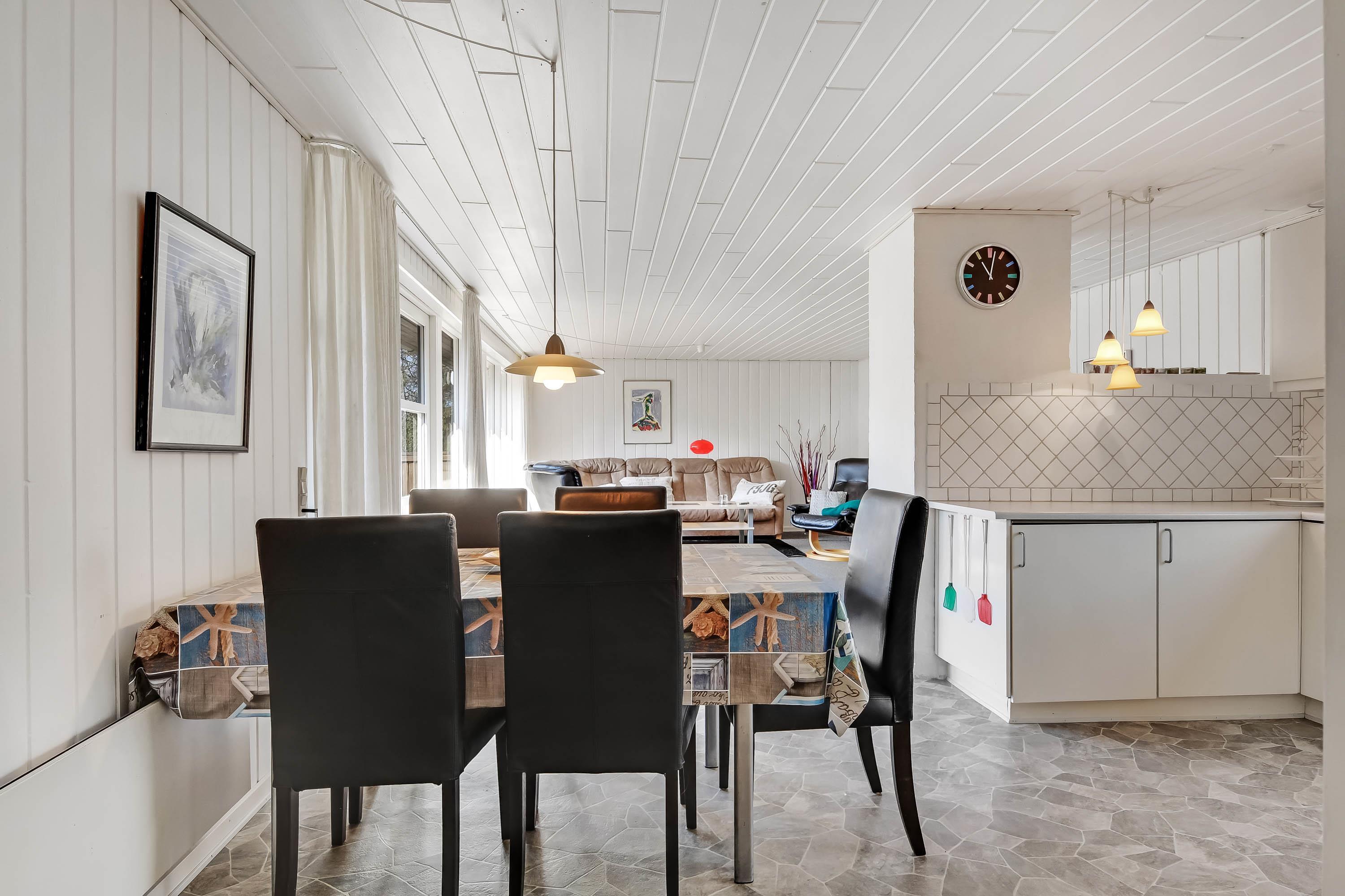 På en dejlig 925 m² grund med græsplæne, omgivet af hække og træer, ligger dette hyggelige og velindrettede feriehus. Huset ligger kun ca. 500 meter fra Nissum Fjord og en lille badestrand, hvor både børn og voksne kan nyde en frisk dukkert eller en stille stund ved vandet.