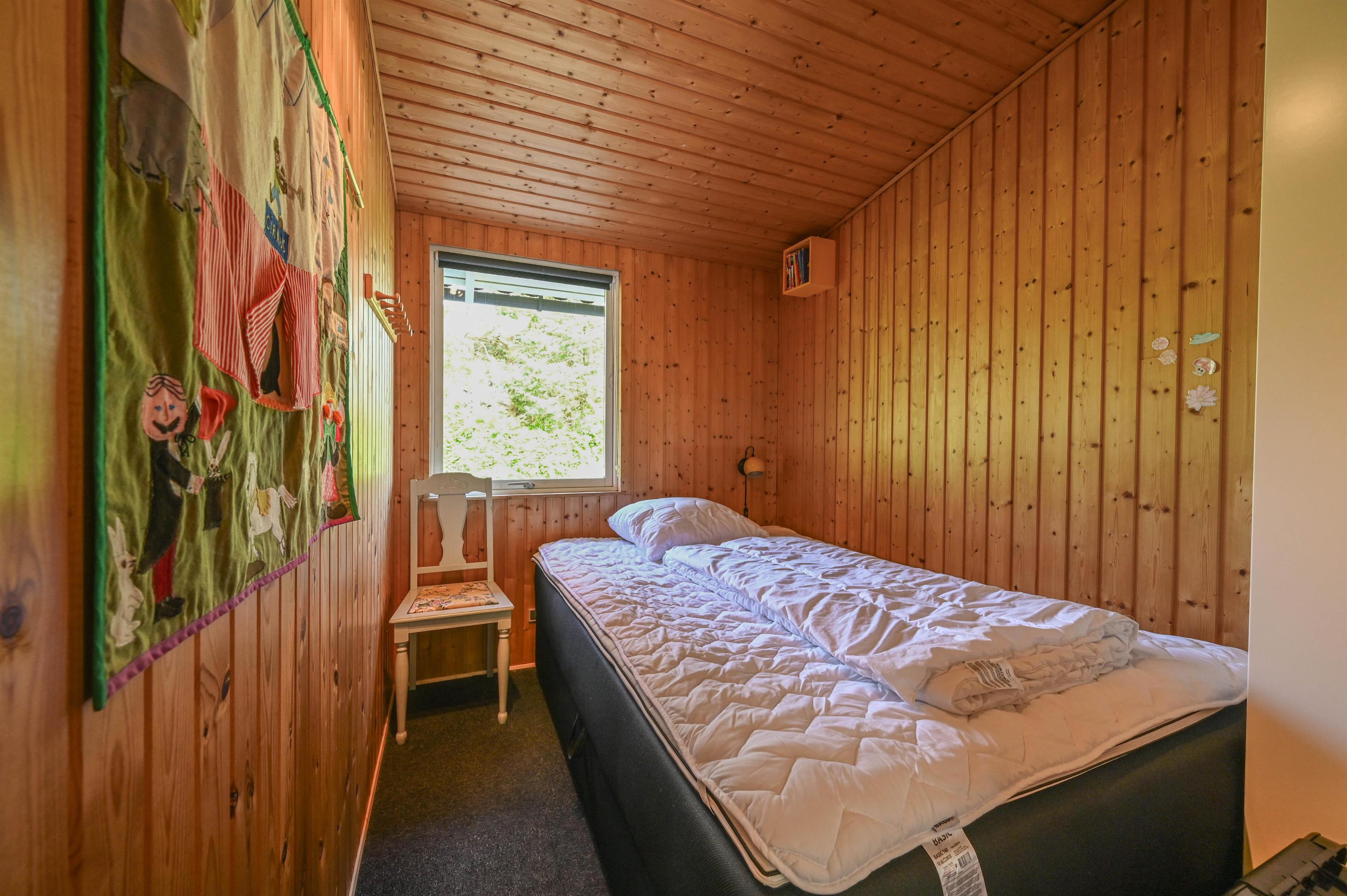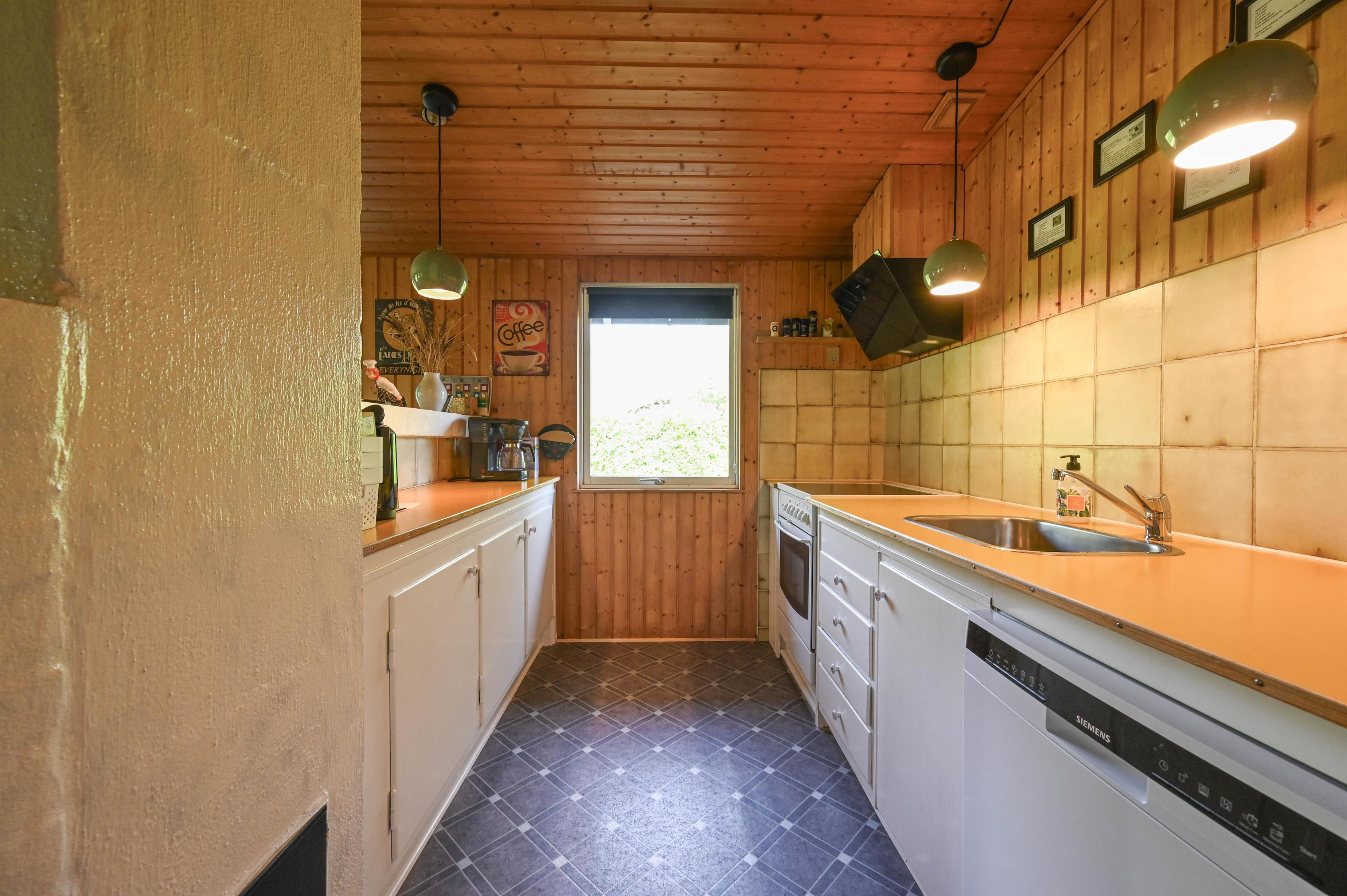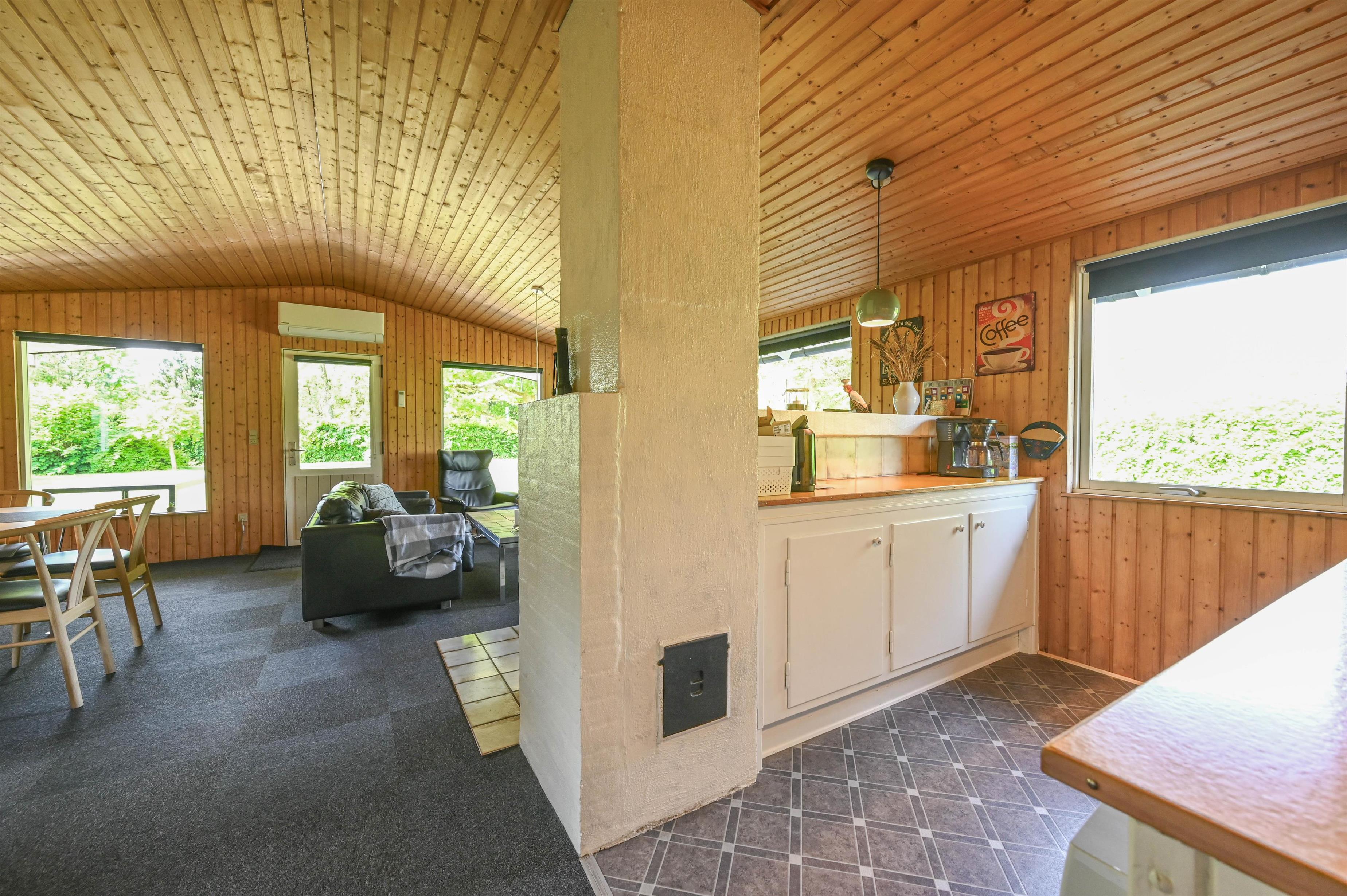 Huset er lyst og venligt indrettet med fokus på hygge og fællesskab. Det åbne køkken ligger i direkte forbindelse med stuen, hvor der både er spiseplads og sofahjørne med TV. Her kan I samles til hyggelige aftener foran brændeovnen eller nyde den behagelige varme fra varmepumpen efter en dag ved fjorden eller stranden.