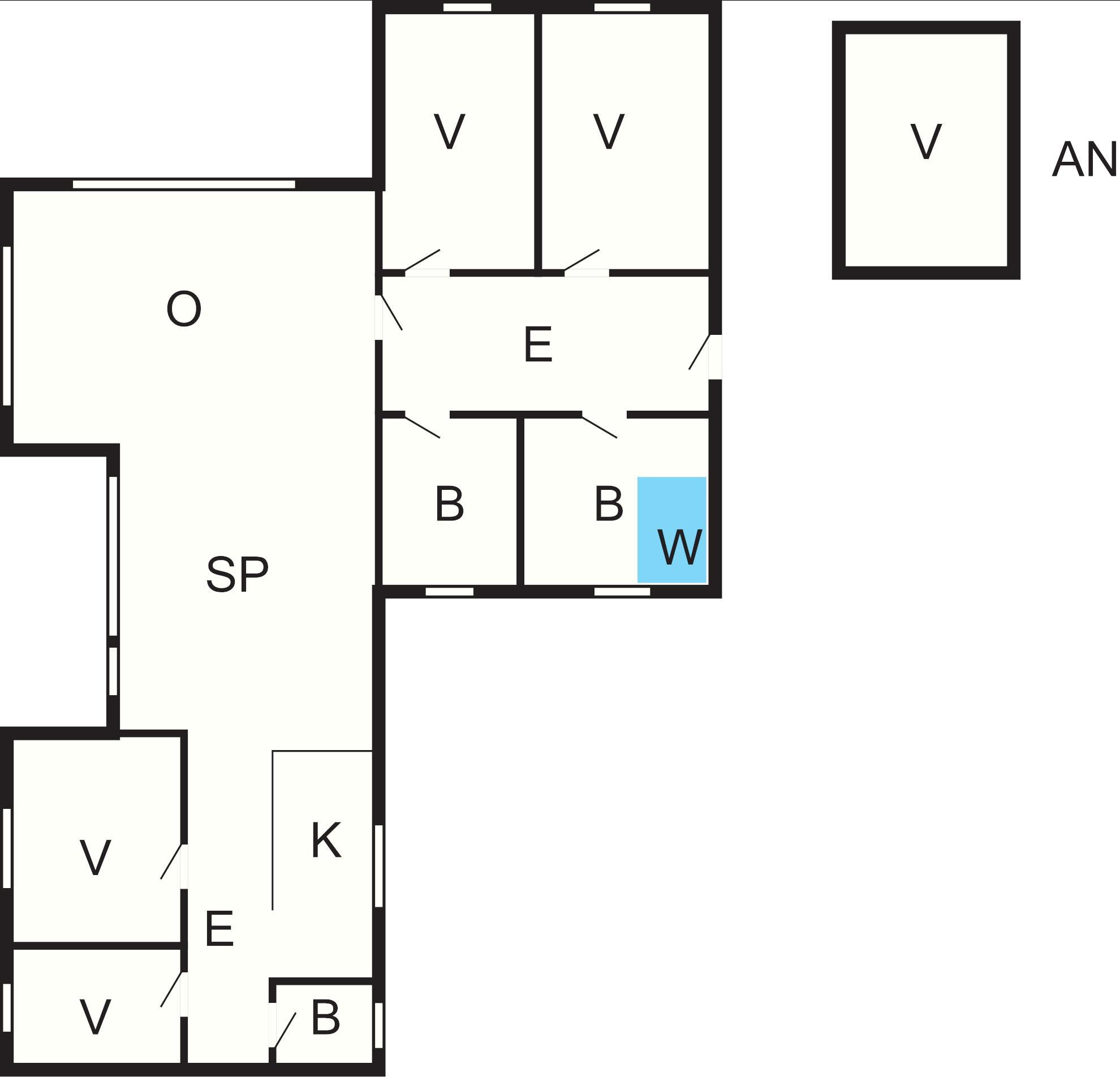 4 Soveværelser: (1DS)+(1DS)+(2S)+(2K)