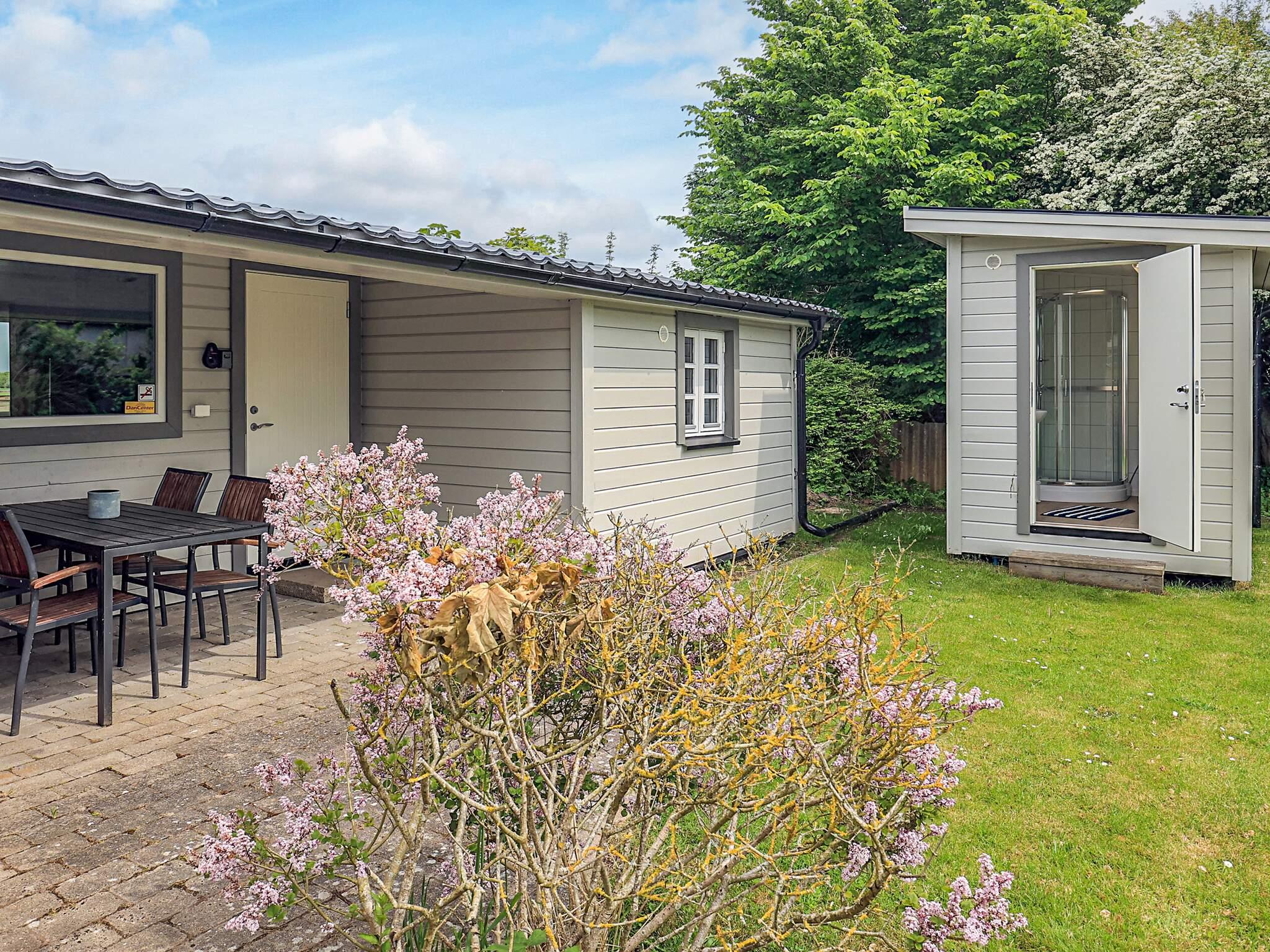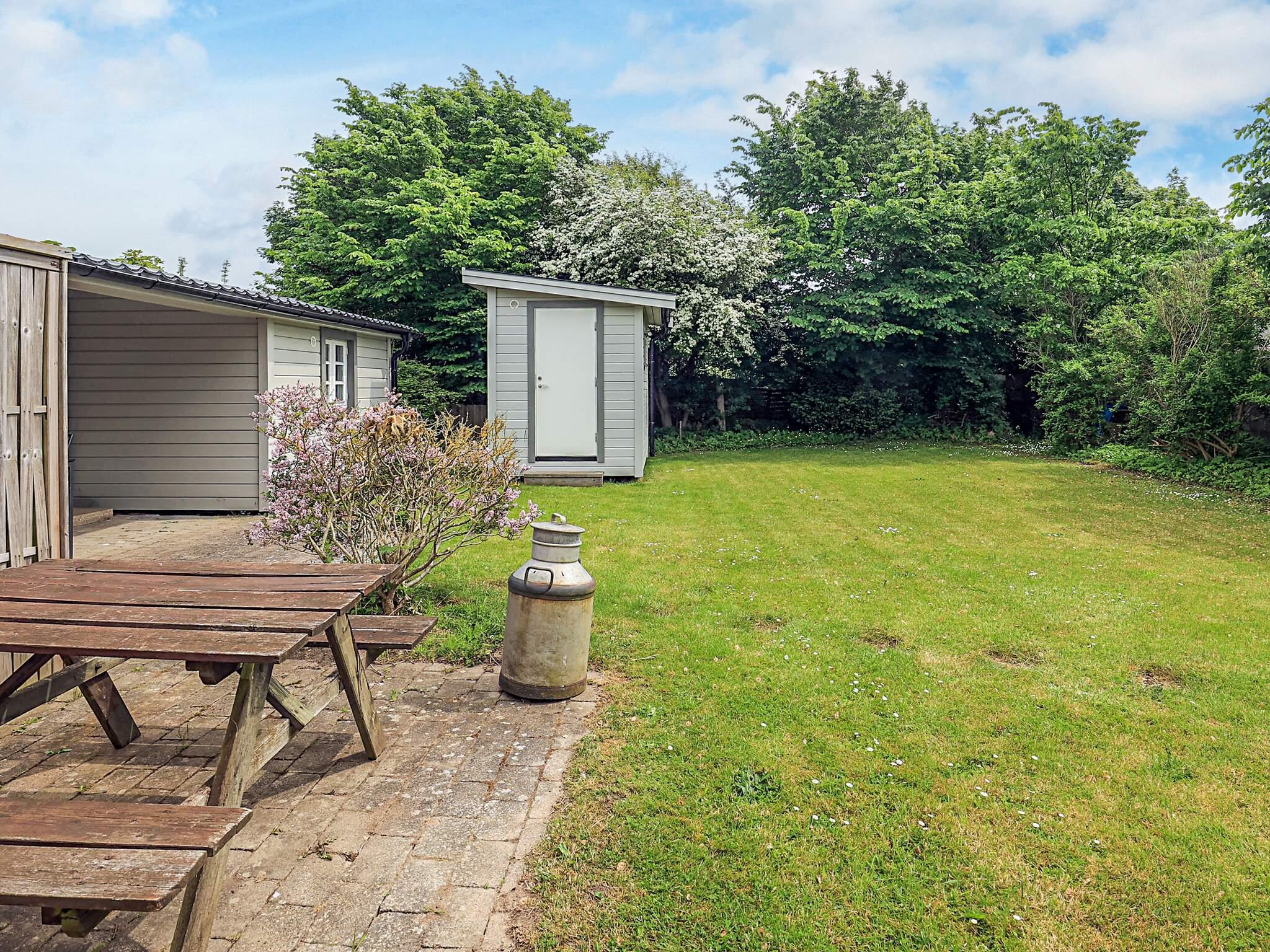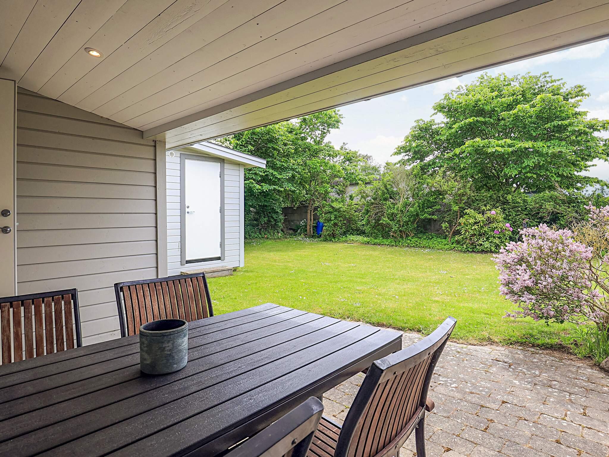 Huset ligger i en skøn, lukket have med god plads til leg, hygge og afslapning. Her kan du nyde de lange sommerdage på den overdækkede terrasse eller slappe af under åben himmel.