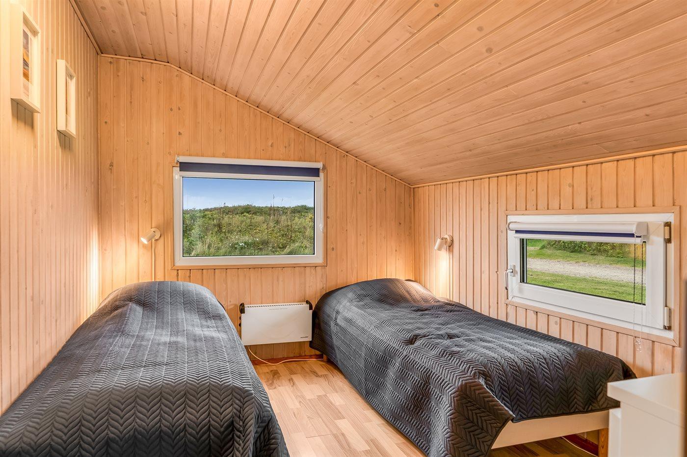 Der er i alt 4 soveværelser. Sovepladserne fordeler sig på: 4 sovepladser i dobbeltsenge. 2 sovepladser i enkeltsenge. 2 sovepladser i køjeseng. Derudover er der 1 stk. barneseng.