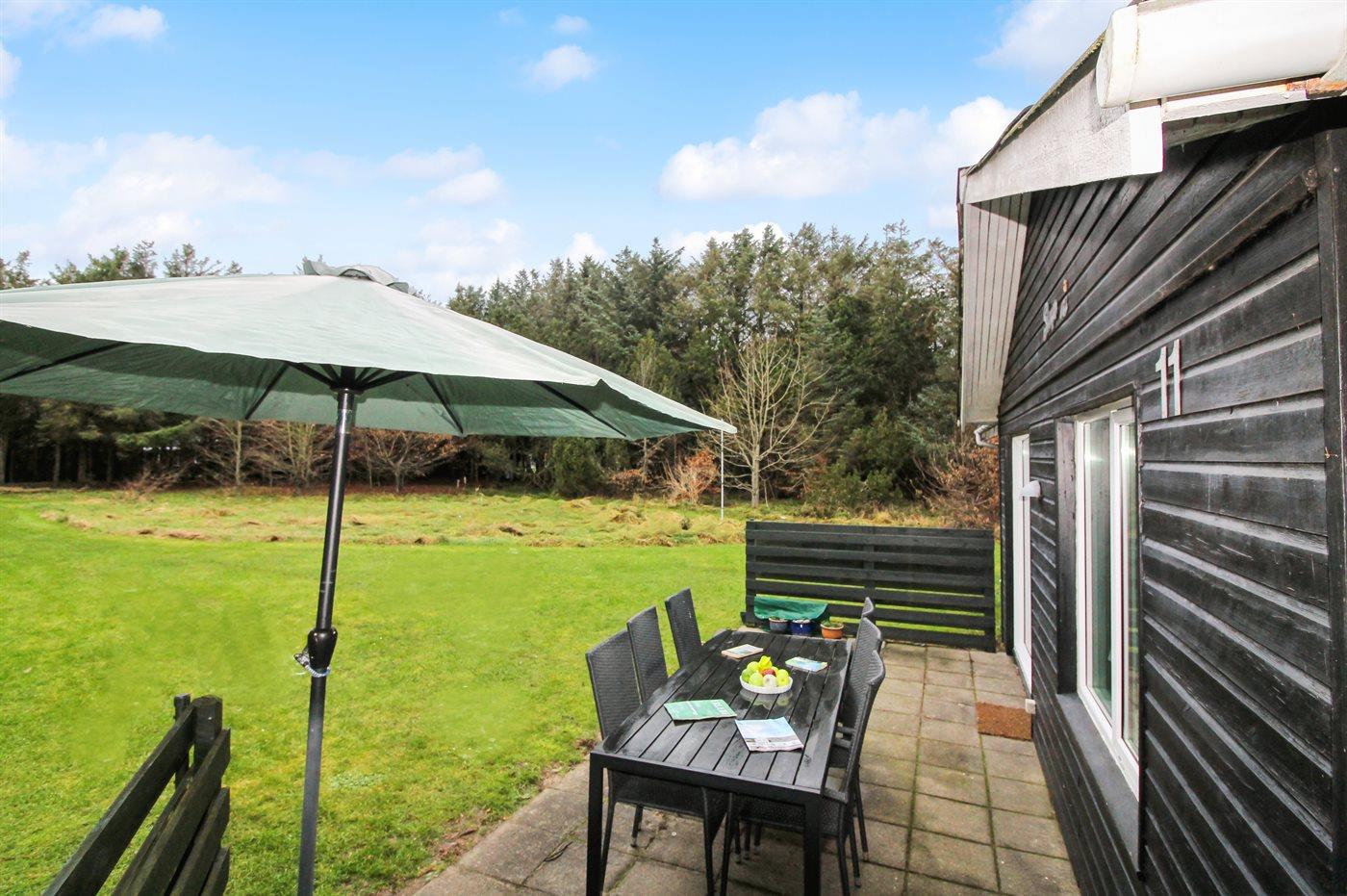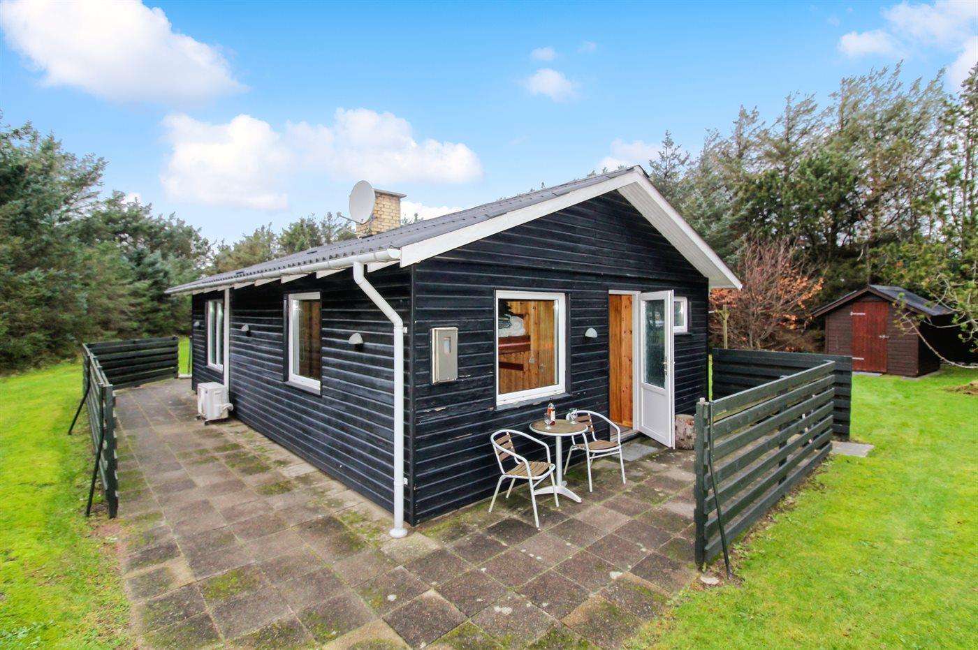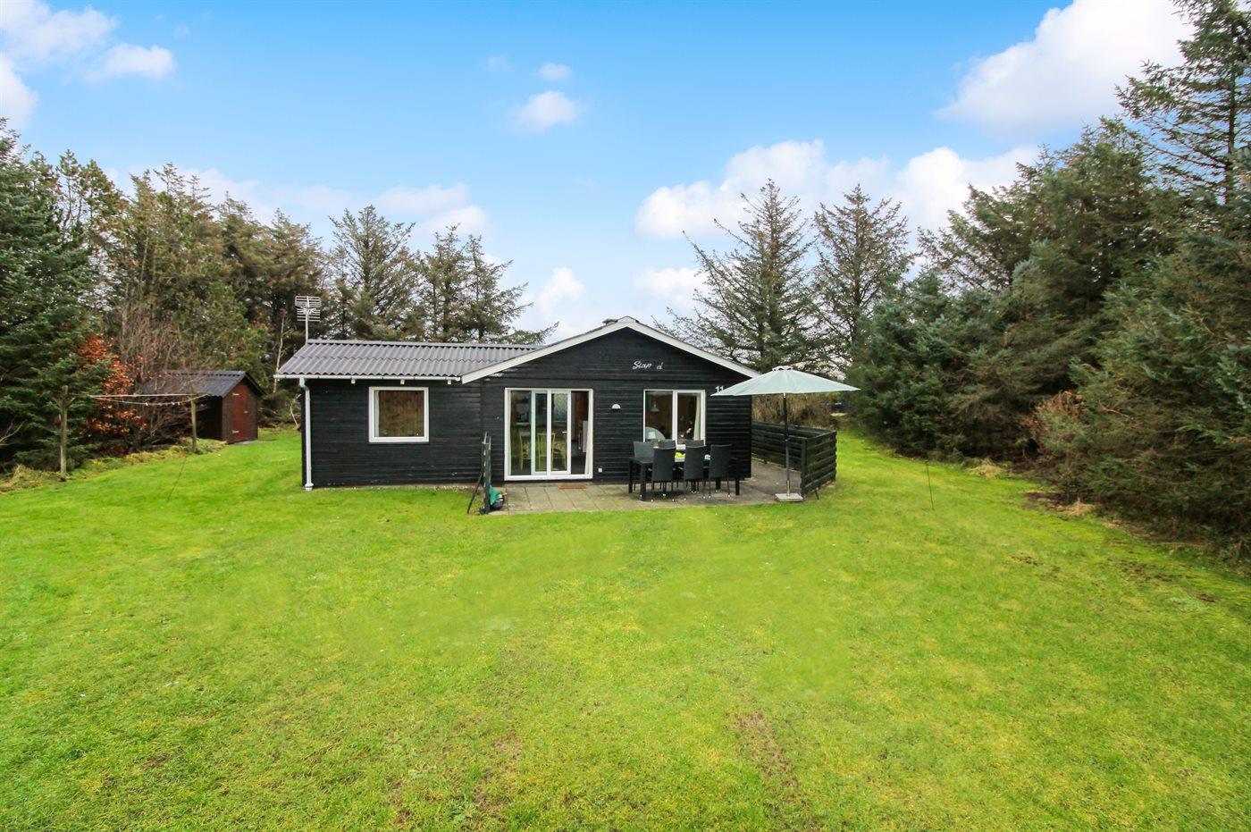 Hyggeligt sommerhus i rolige omgivelser nær havet i Løkken med terrasse, brændeovn og internet.