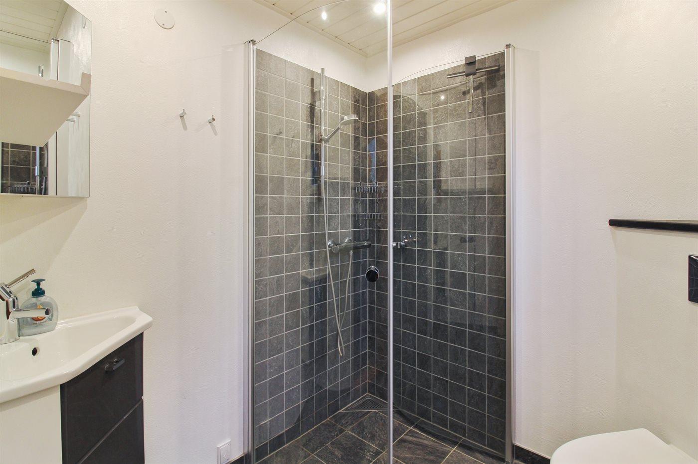 Der er 1 badeværelse med bruseniche og 1 toilet.